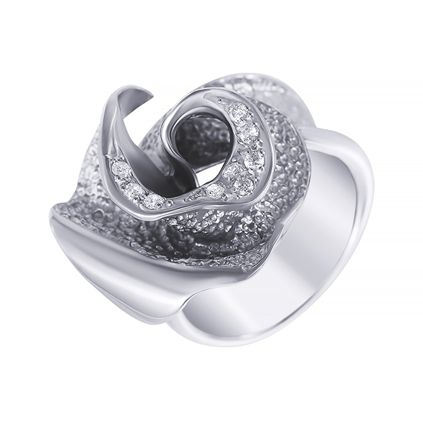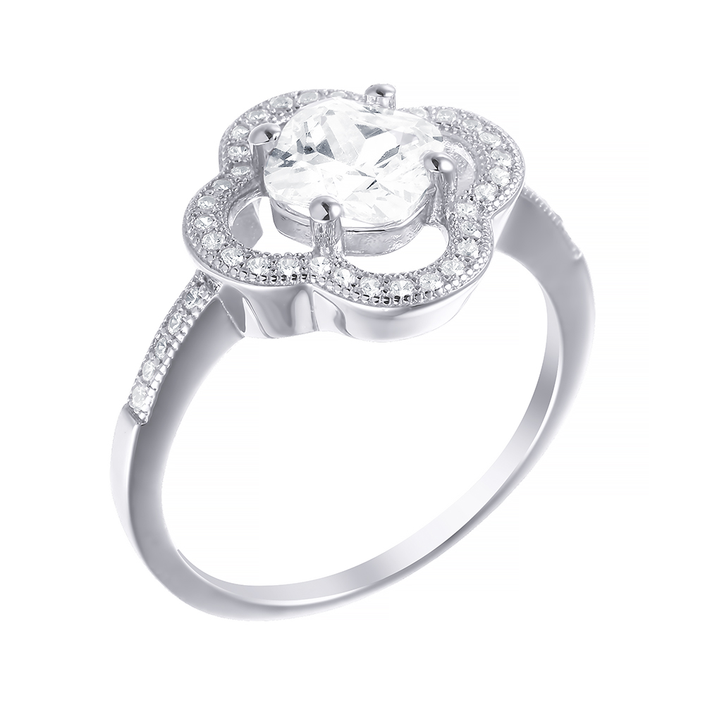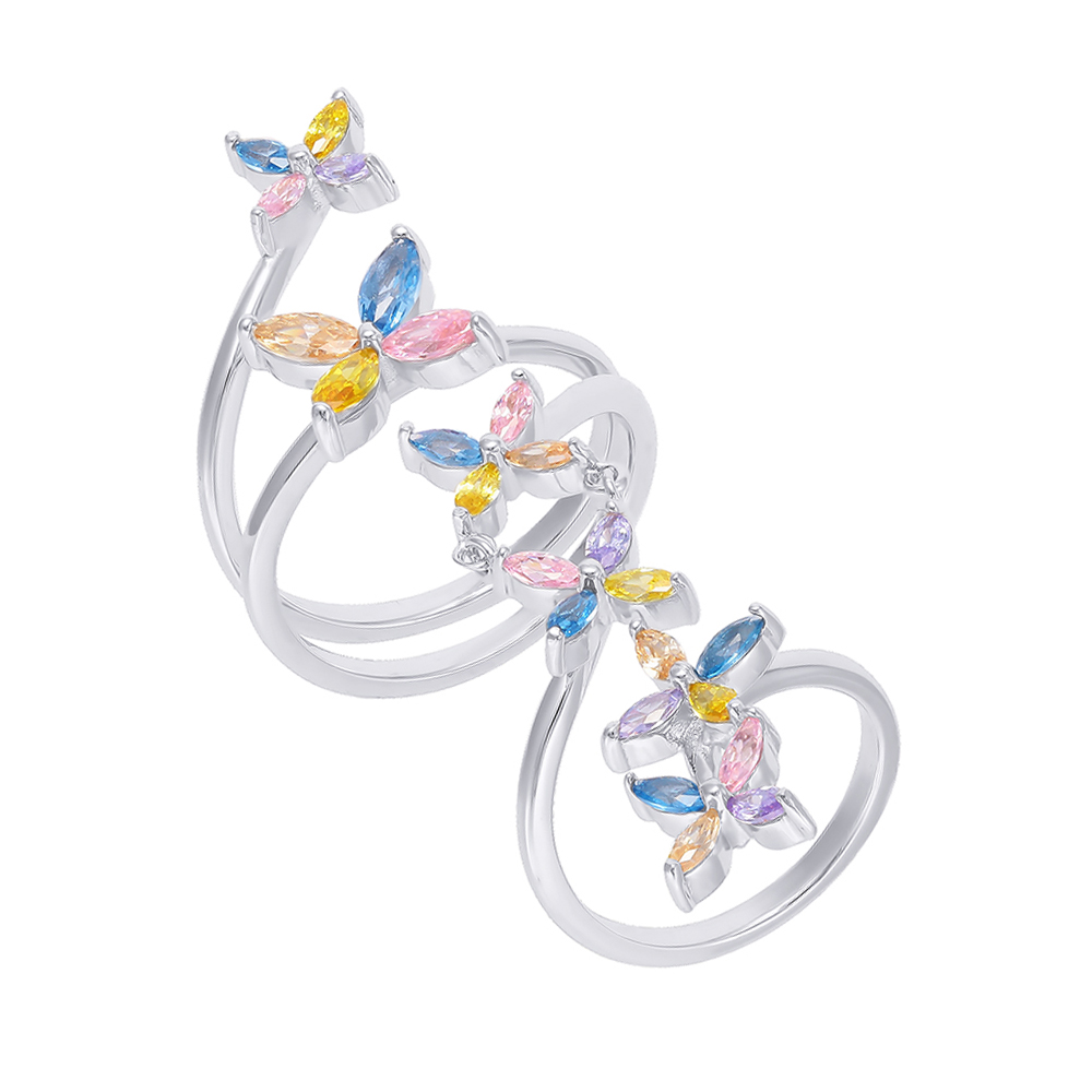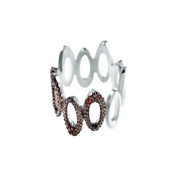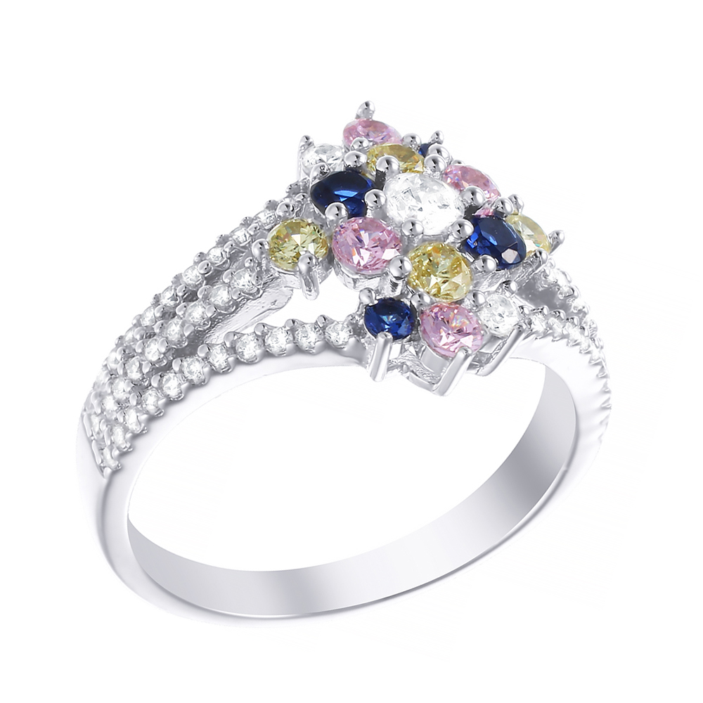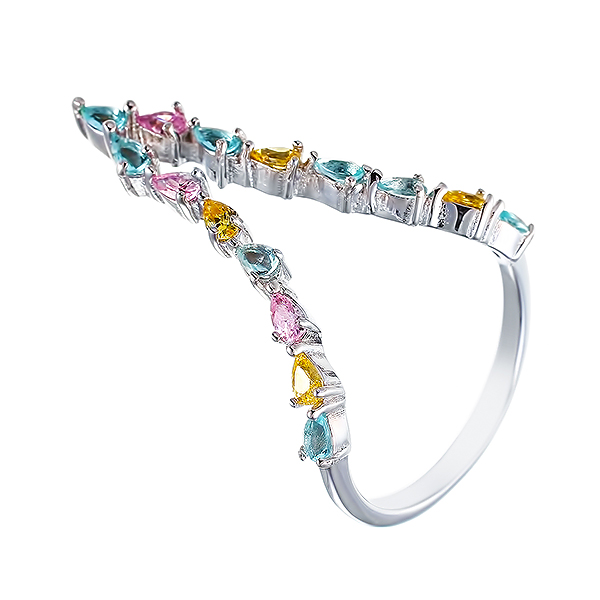 Кольцо из серебра с хризолитами и фианитами и эмалью