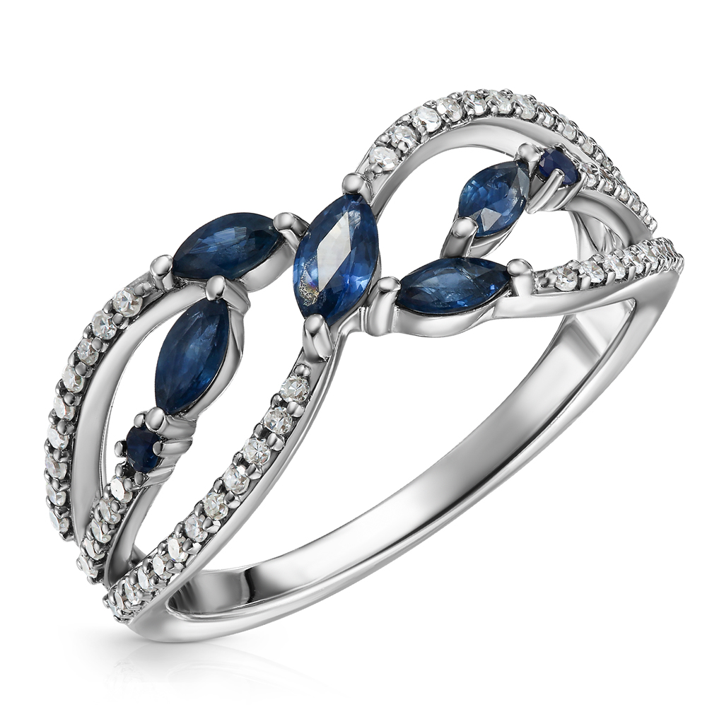 Кольцо из белого золота с бриллиантами, сапфирами, топазом