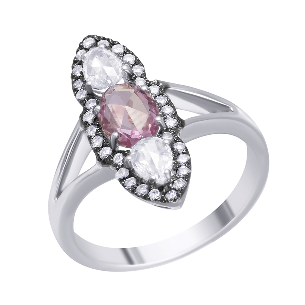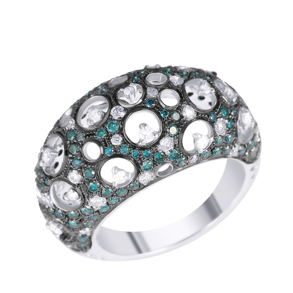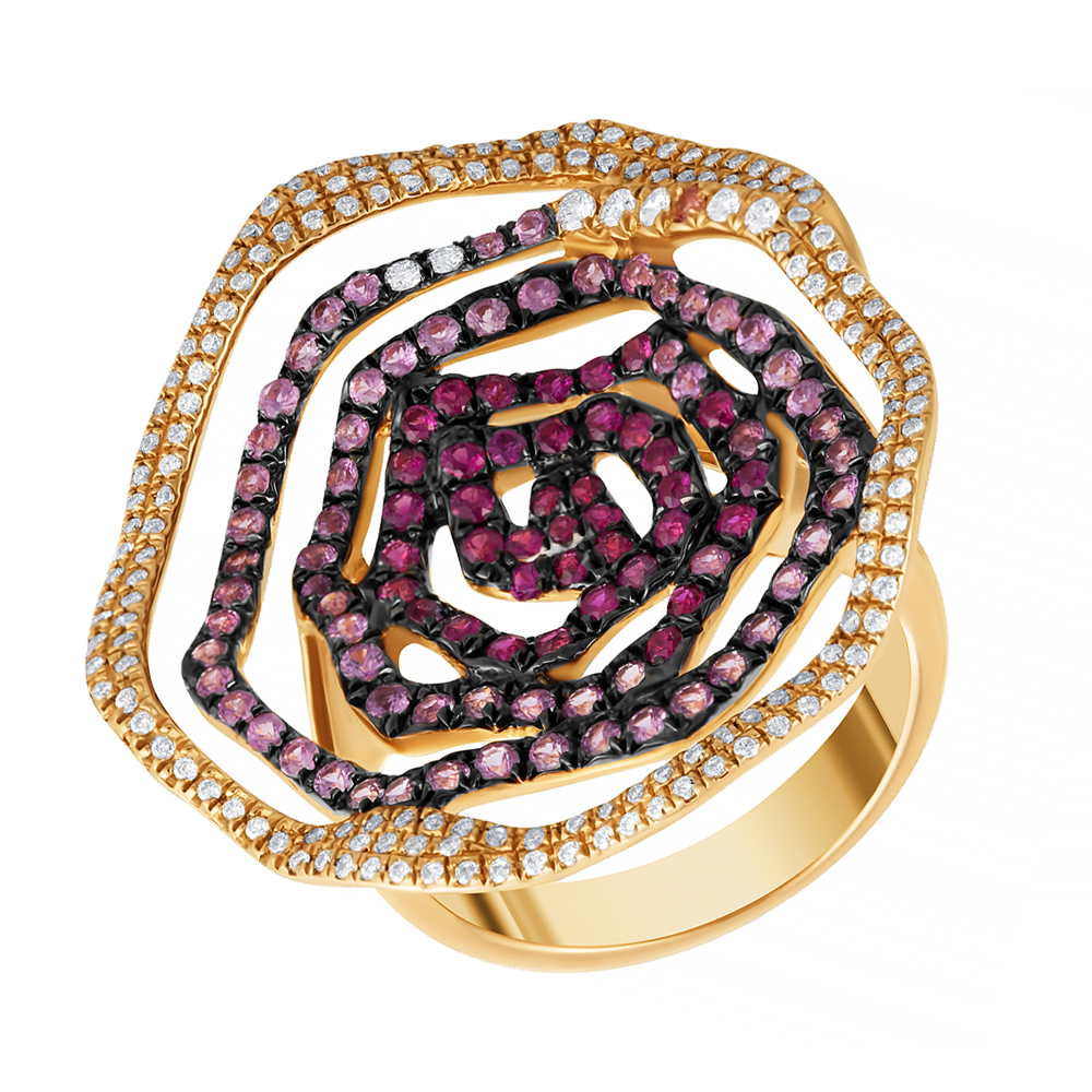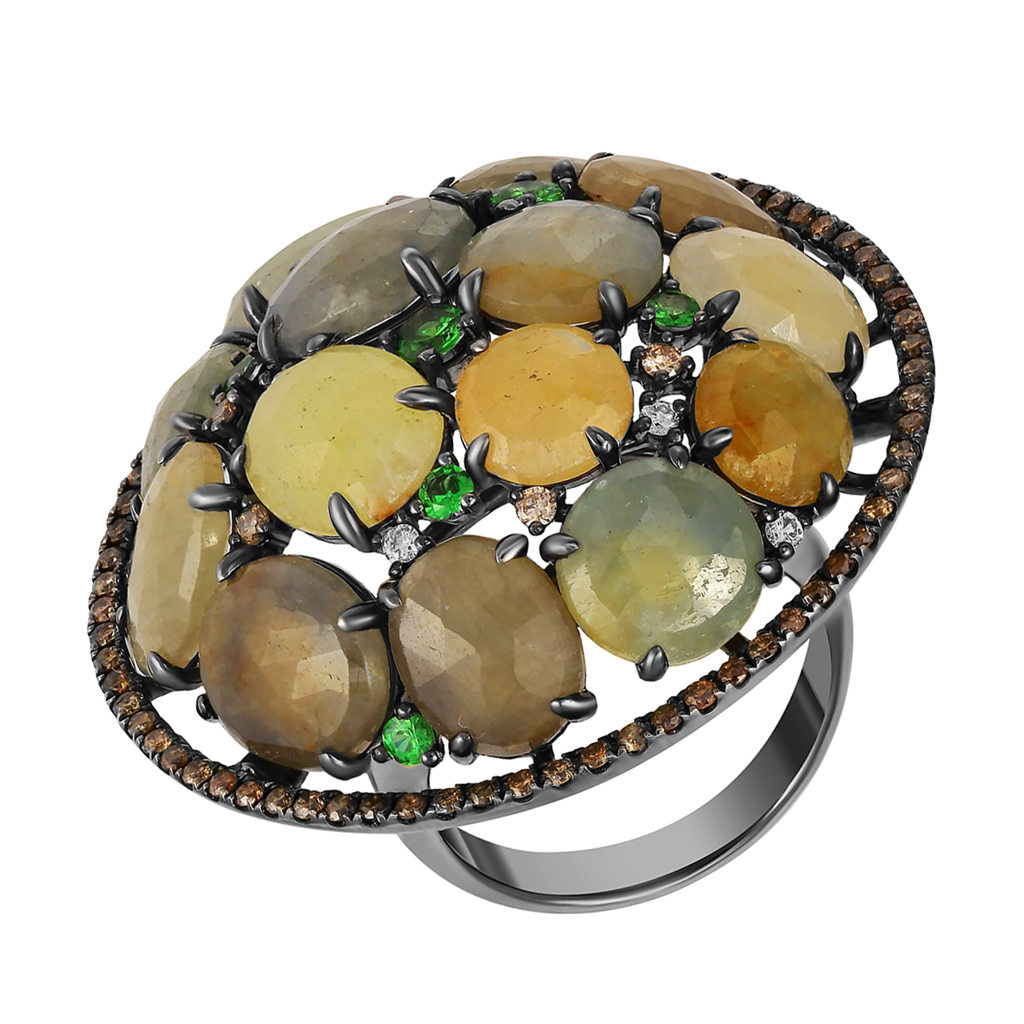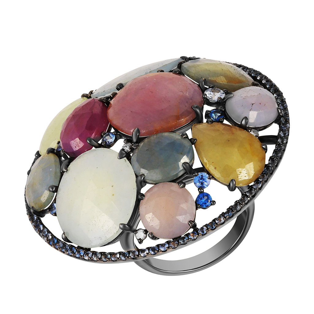 Кольцо из черненого золота с бриллиантами, корундами, сапфирами