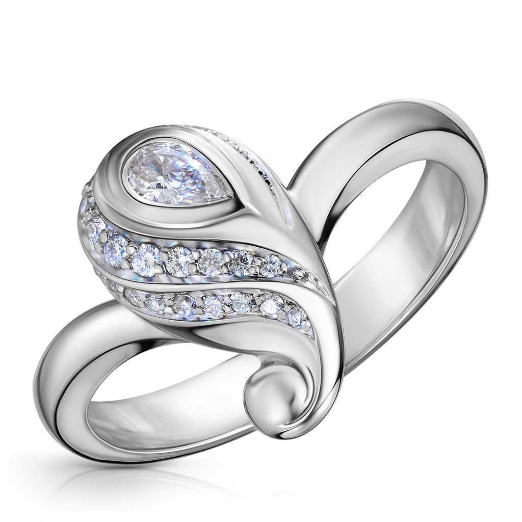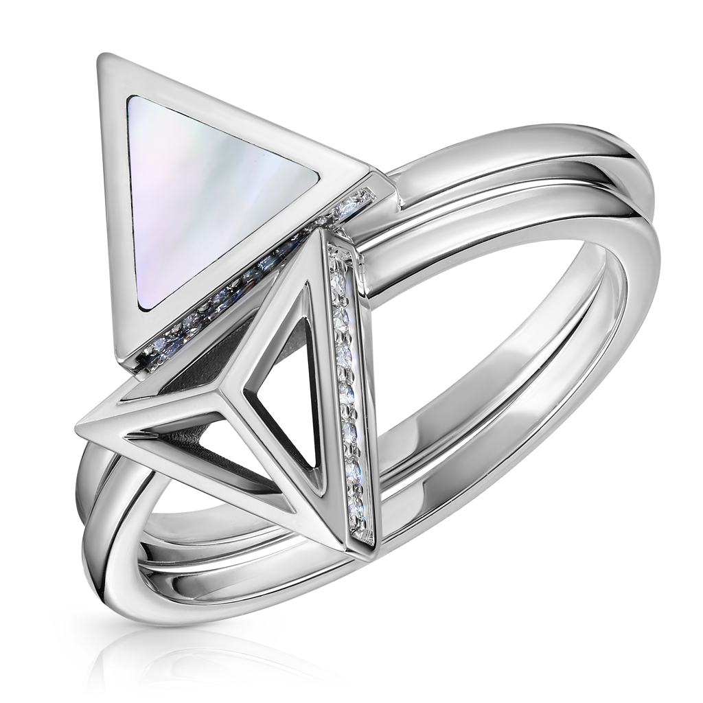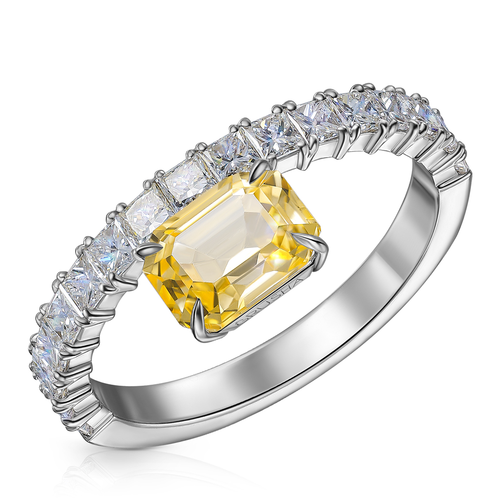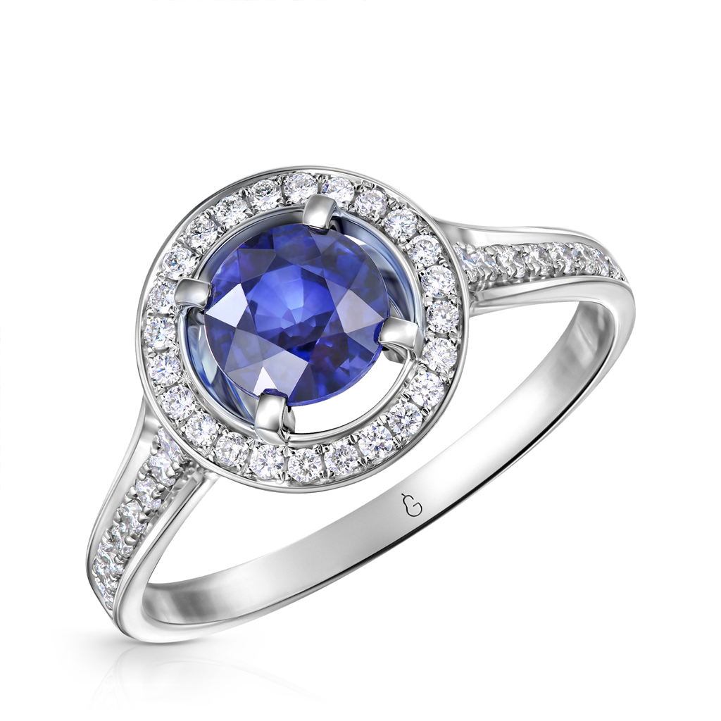 Кольцо из черненого золота с бриллиантами, корундами, сапфирами