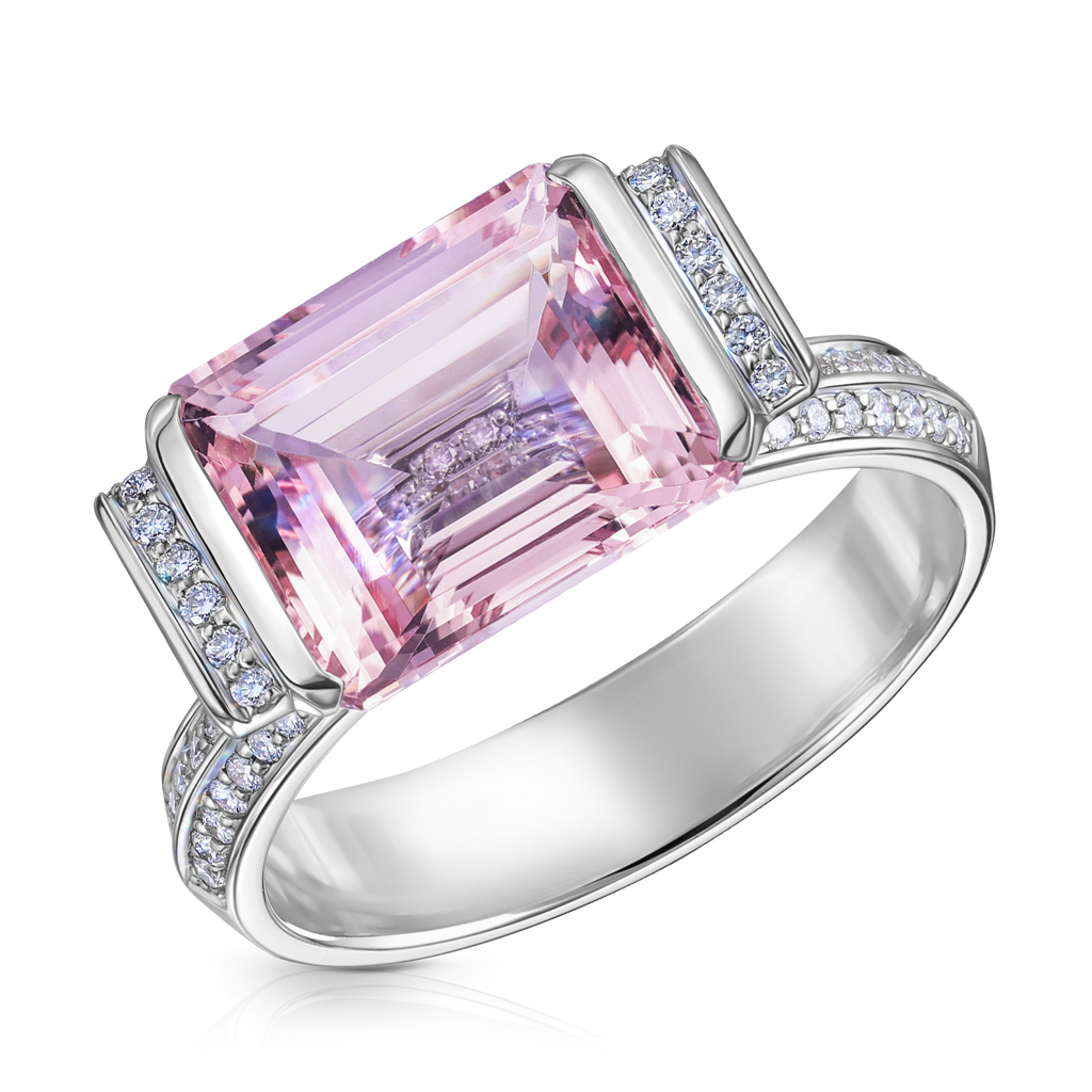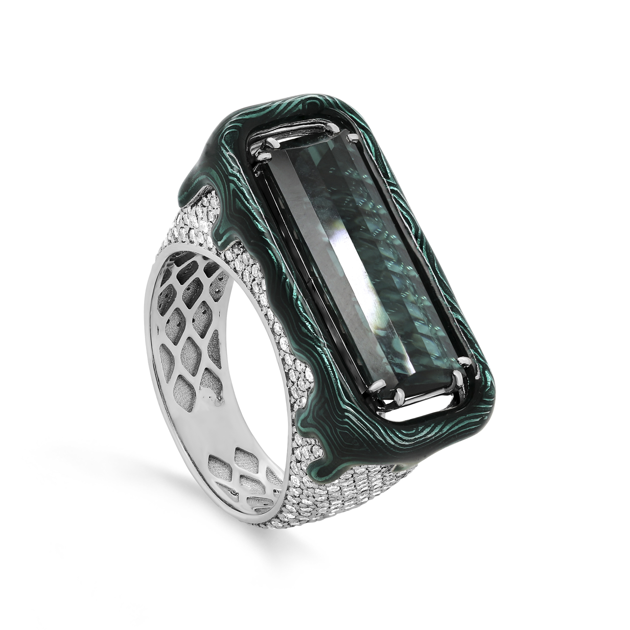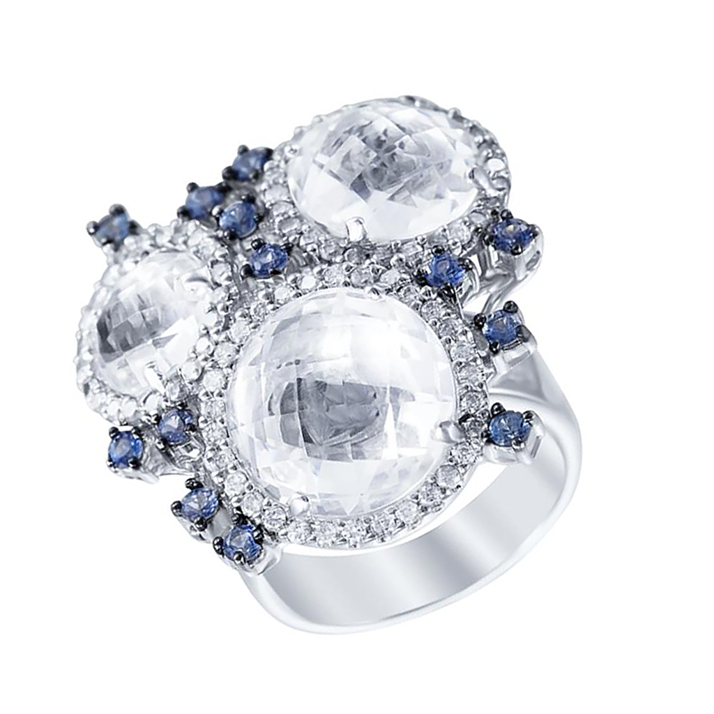 Кольцо из белого золота с цаворитами, иолитом и аквамаринами