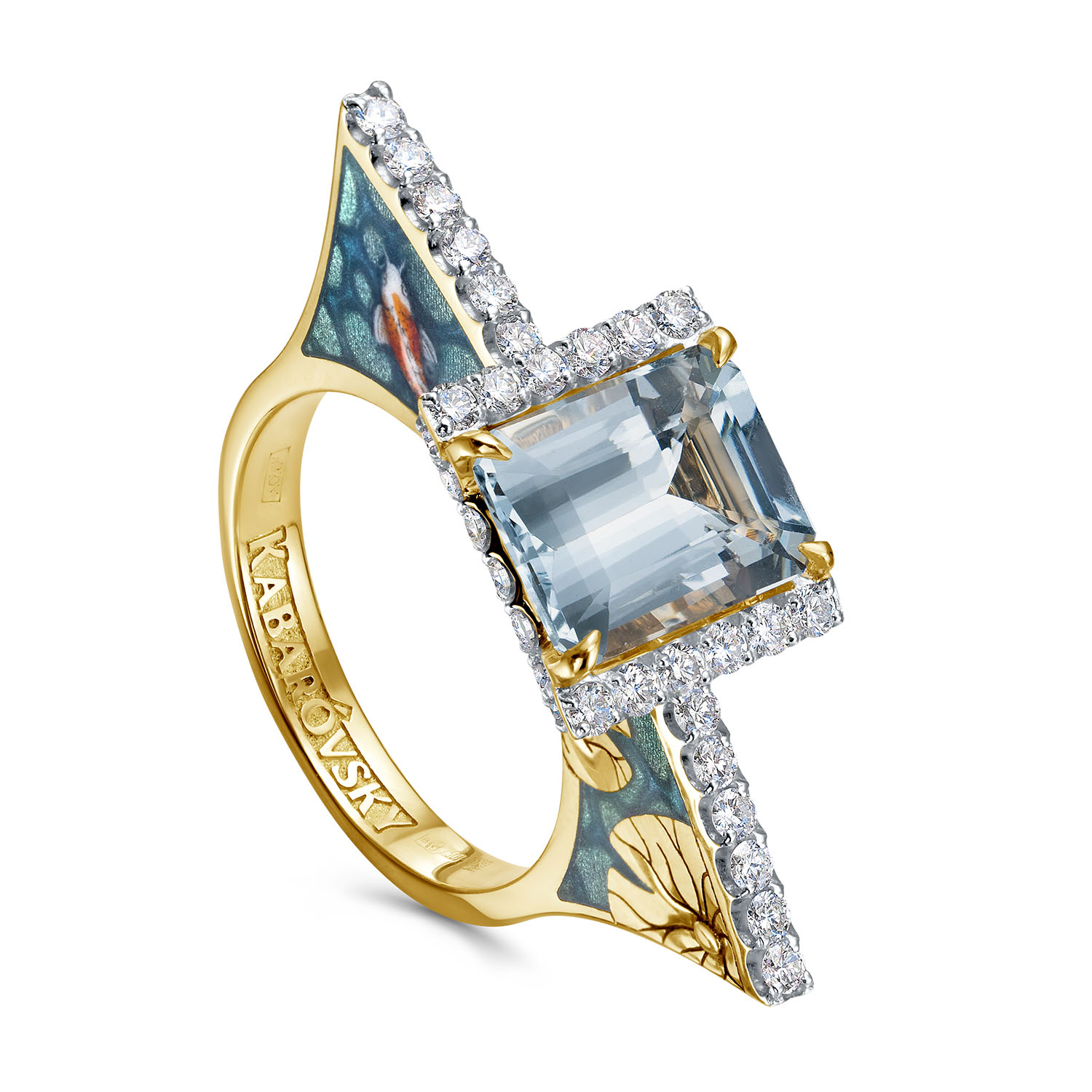 Кольцо из желтого золота с аквамарином, бриллиантами