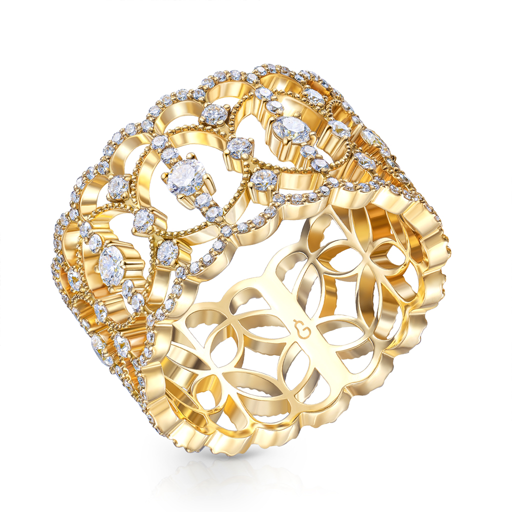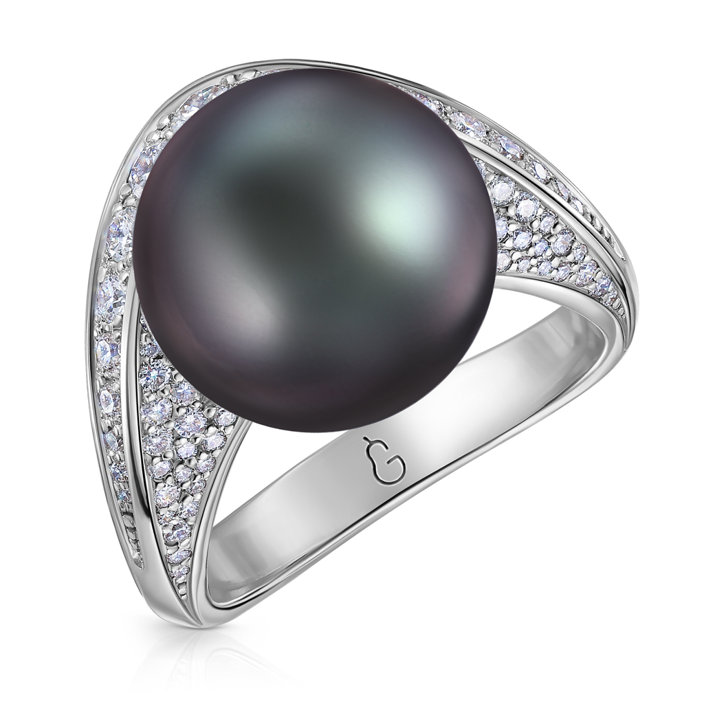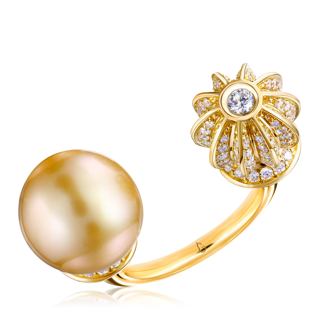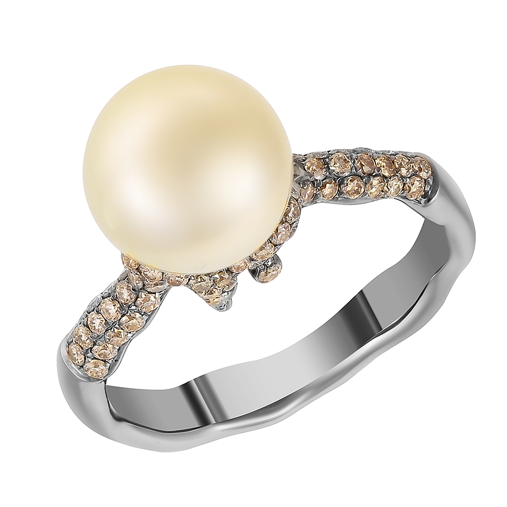 Кольцо из желтого золота с бриллиантами и жемчугом
