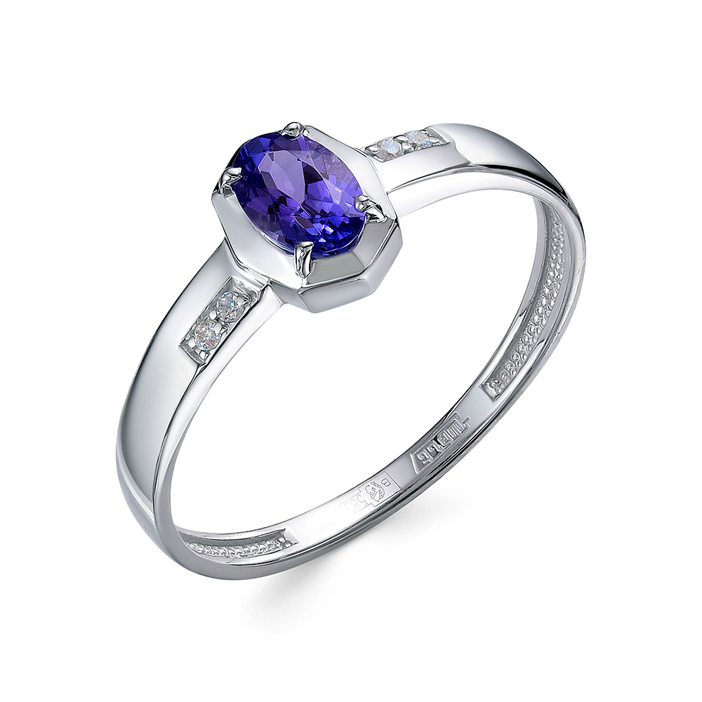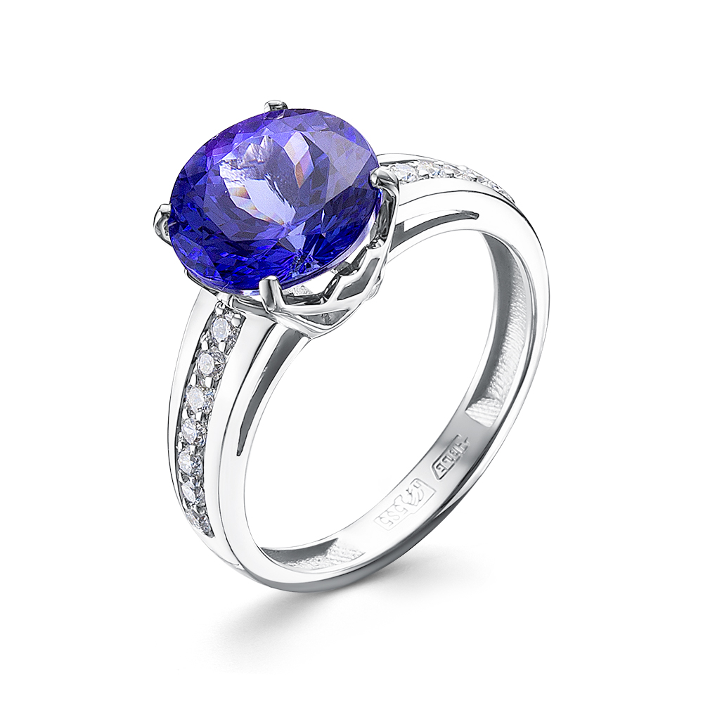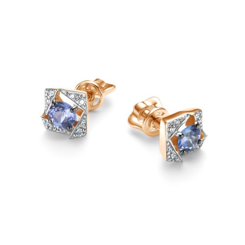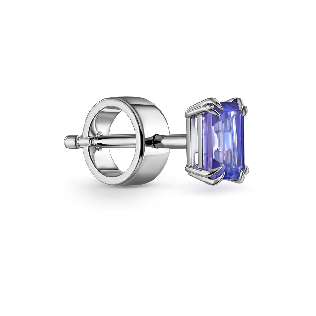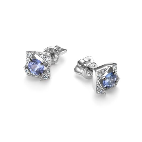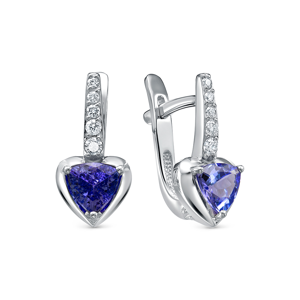 Серьги с английским замком из белого золота с бриллиантами, танзанитами