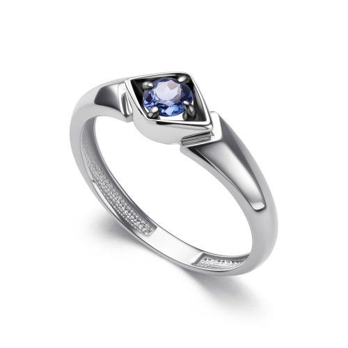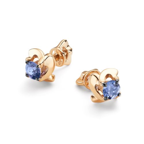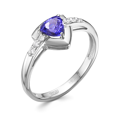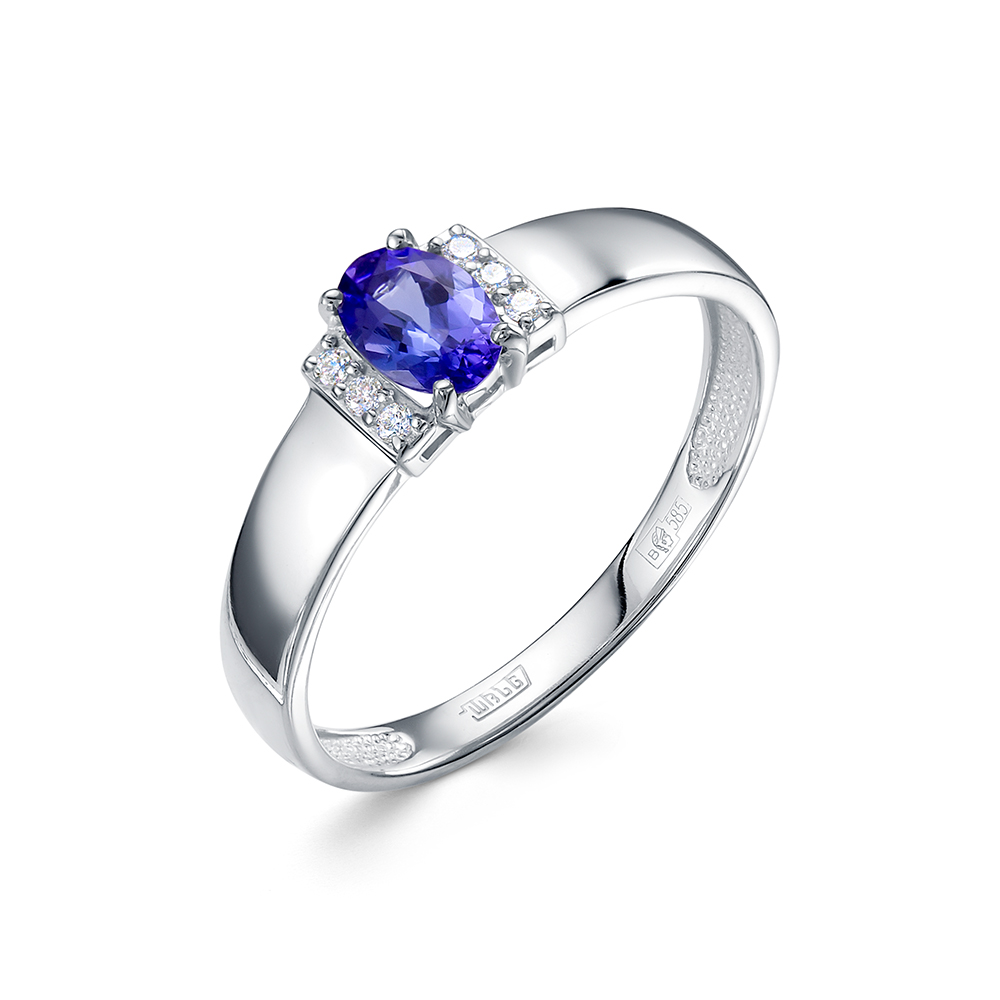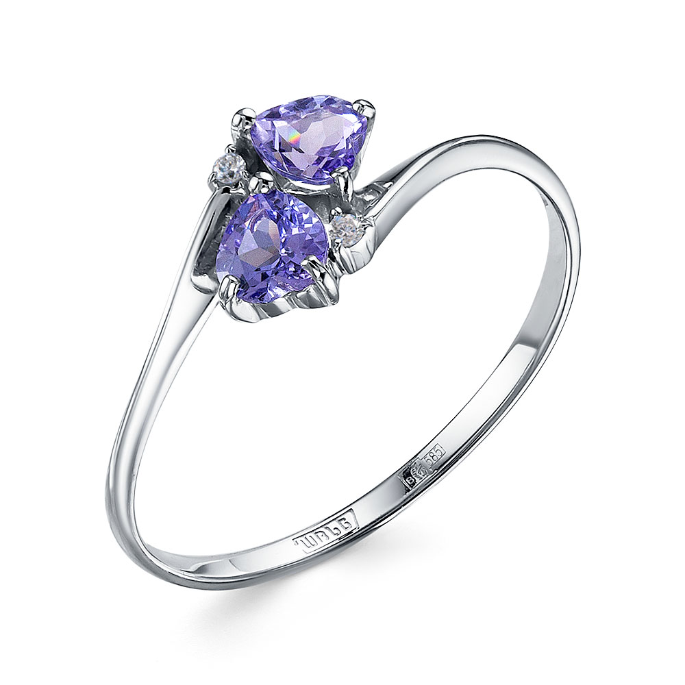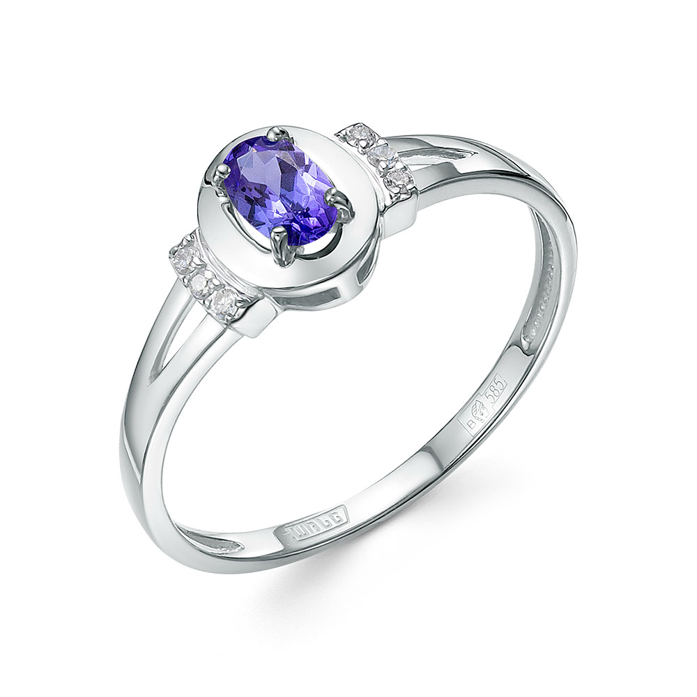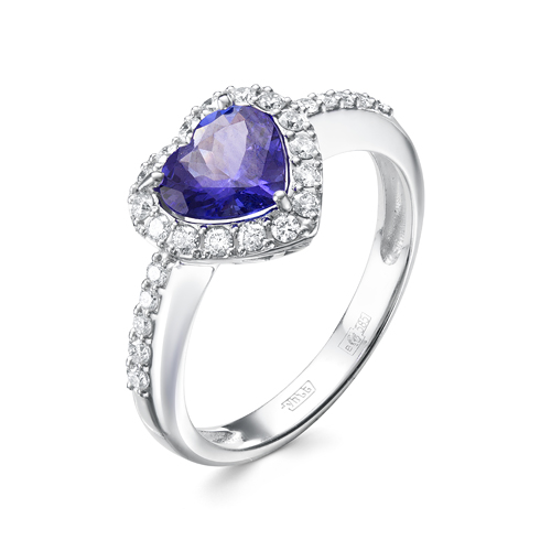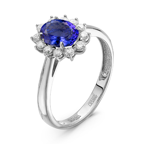 Серьги с английским замком из белого золота с бриллиантами, танзанитами