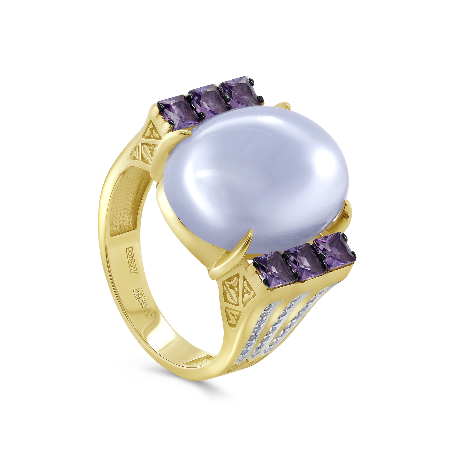 Кольцо из желтого золота с бриллиантами, аметистом, цветными