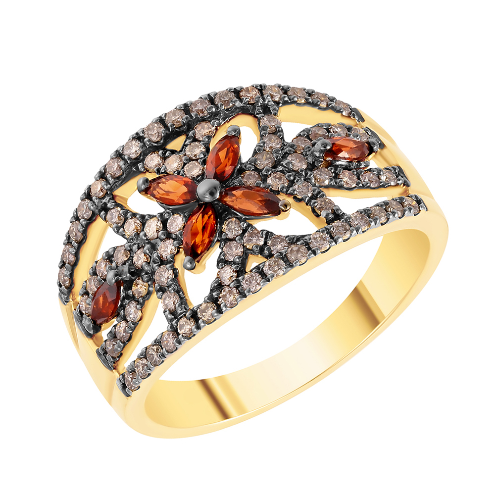 Кольца из комбинированного золота с бриллиантами и гранатом