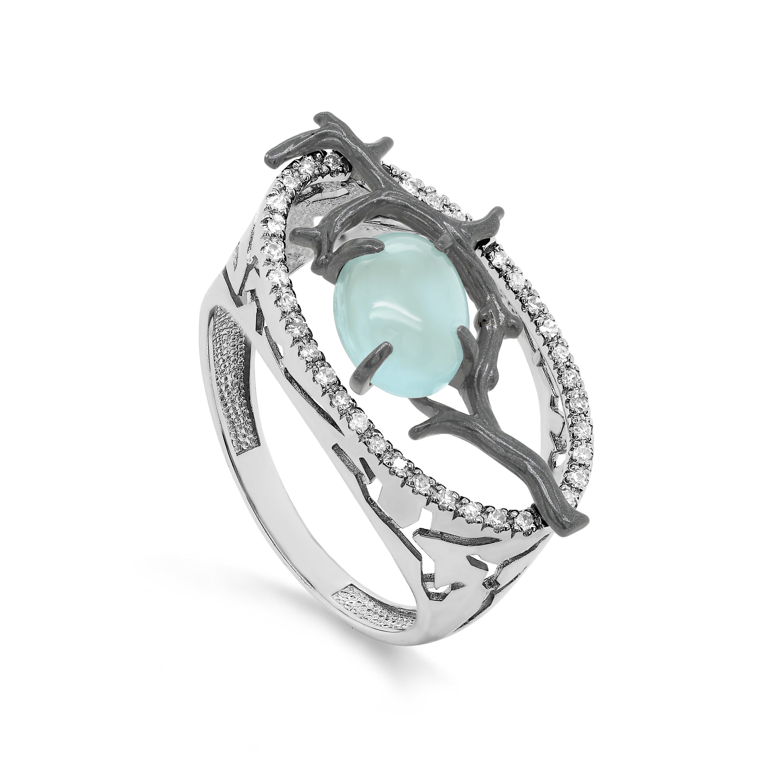 Кольцо из белого золота с бриллиантами, сапфирами и топазом