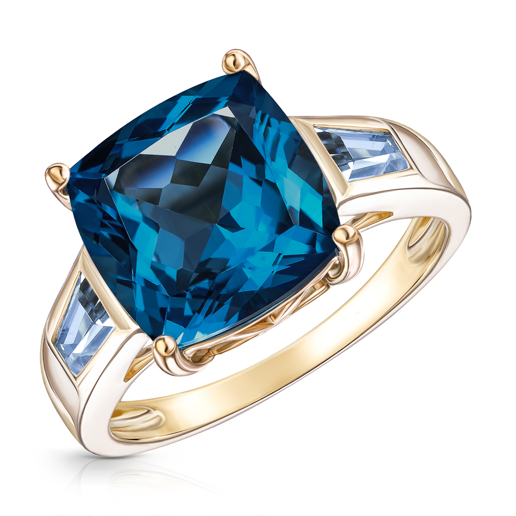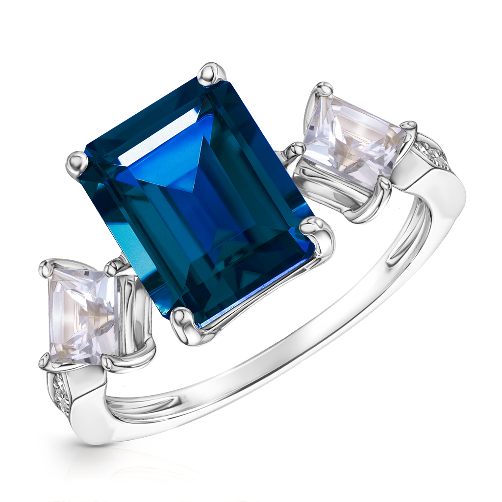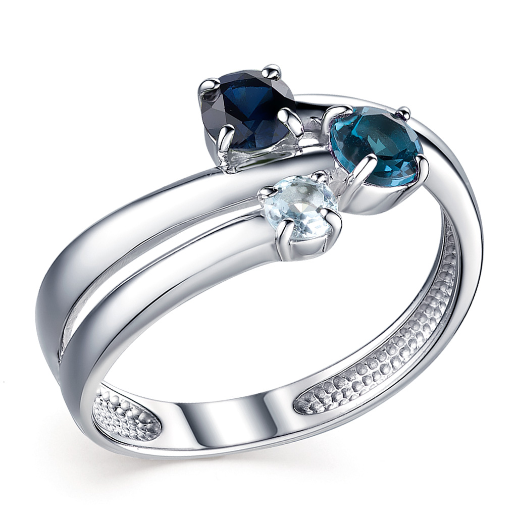 Кольцо из белого золота с сапфиром, топазом, танзанитом, иолитом