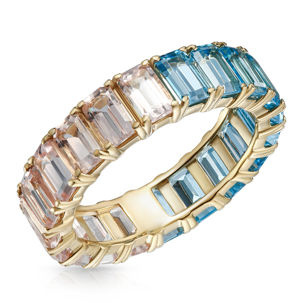 Кольцо из желтого золота с бриллиантами, сапфирами, раухтопазами, топазами