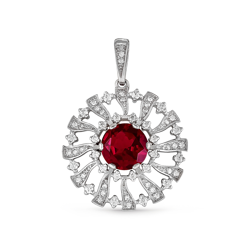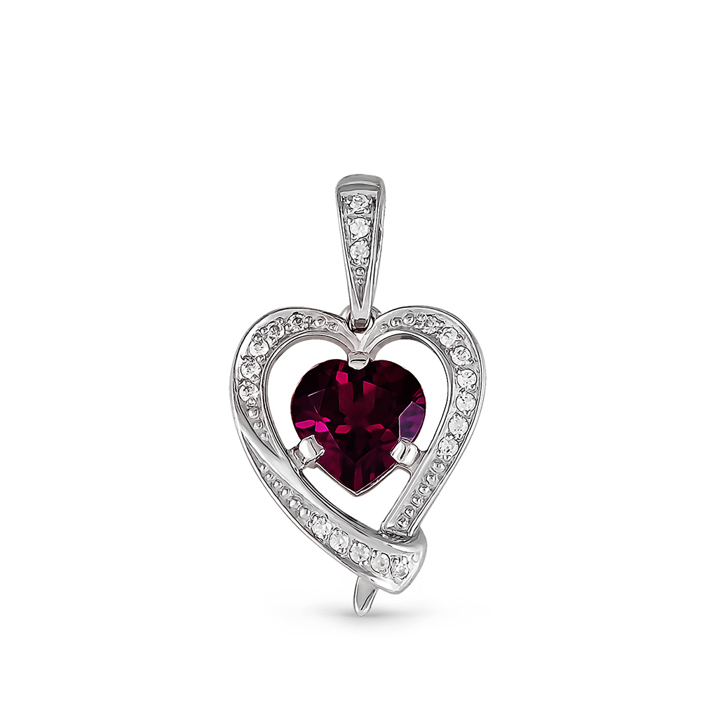 Подвеска из серебра с фианитами, родолитом