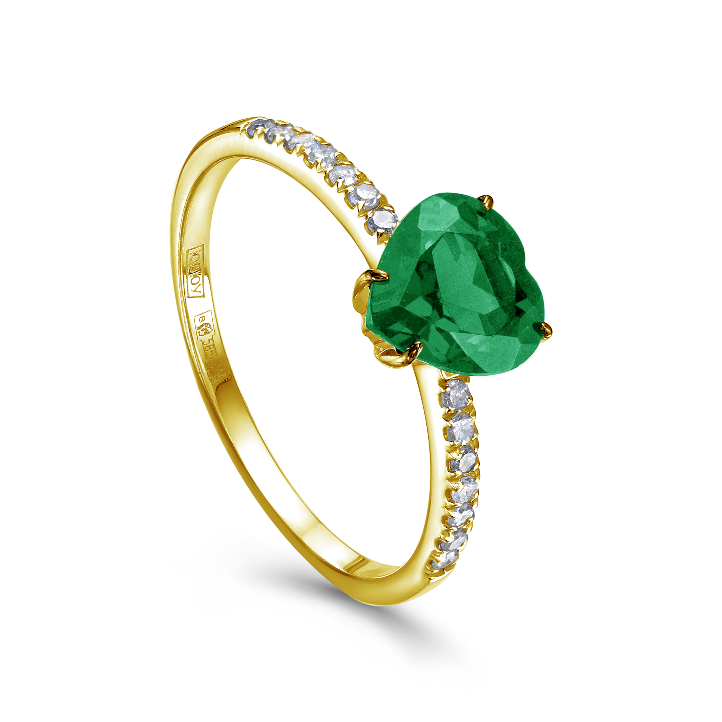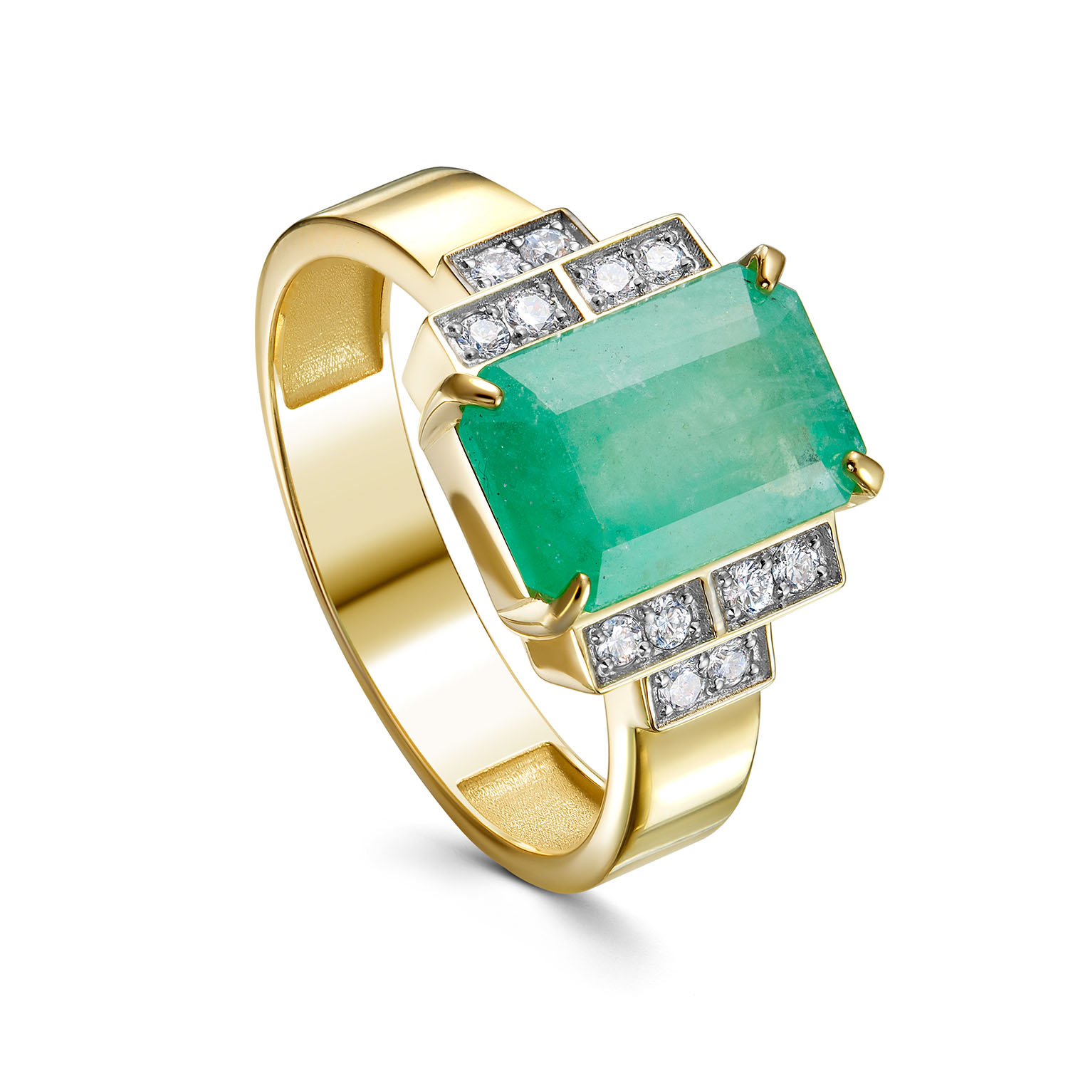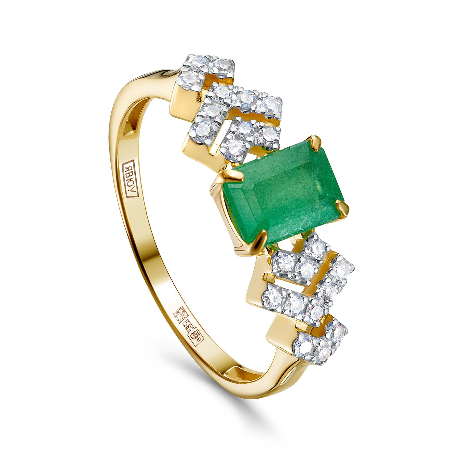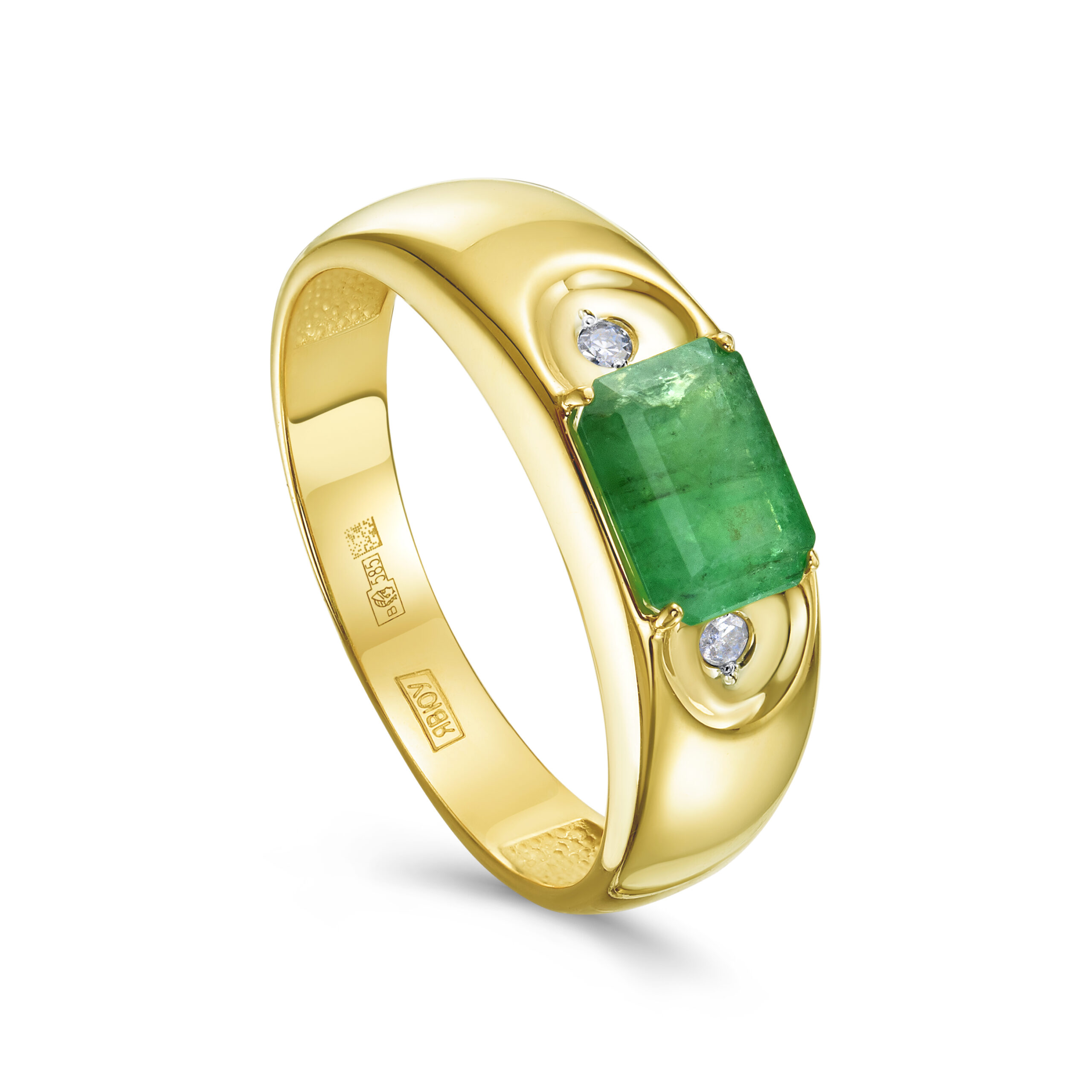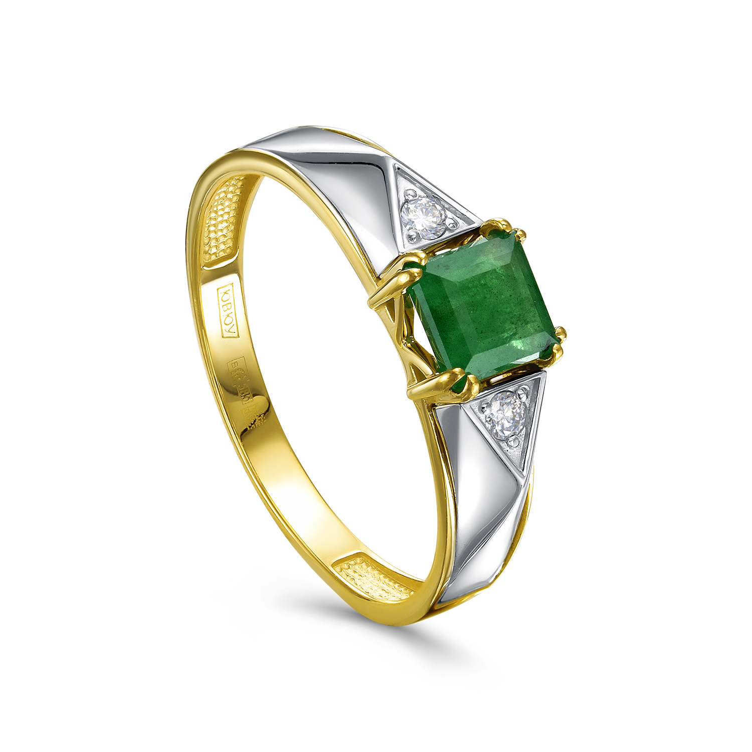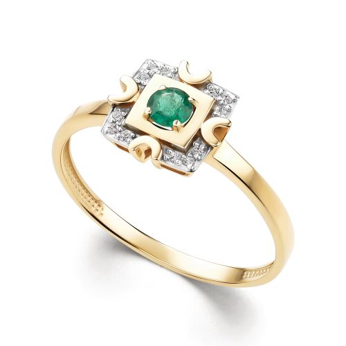 Кольца из желтого золота с бриллиантами и изумрудом