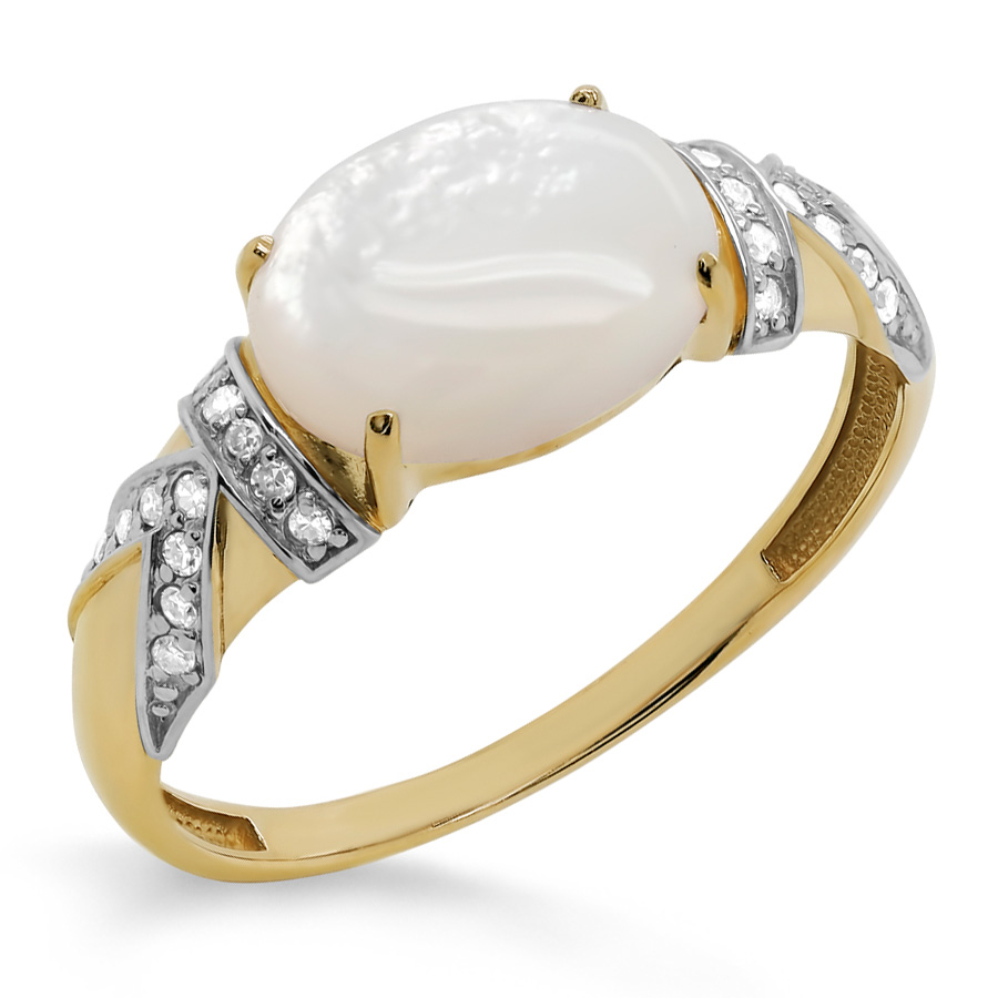 Кольца из желтого золота с бриллиантами и перламутром