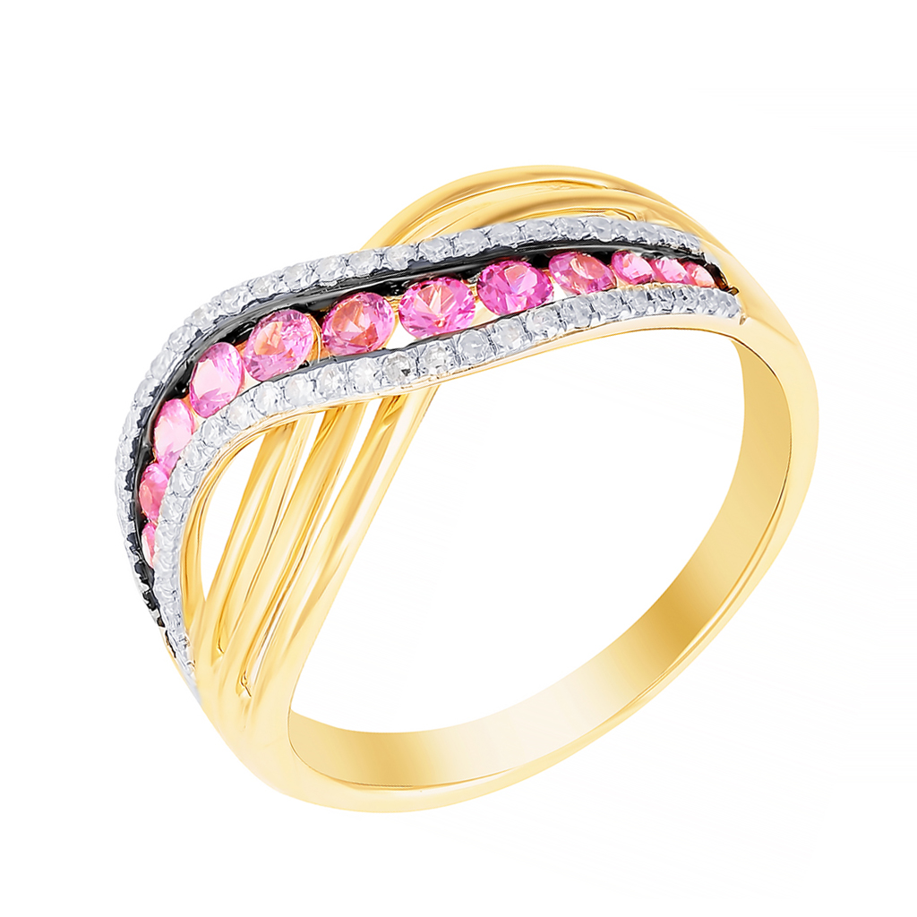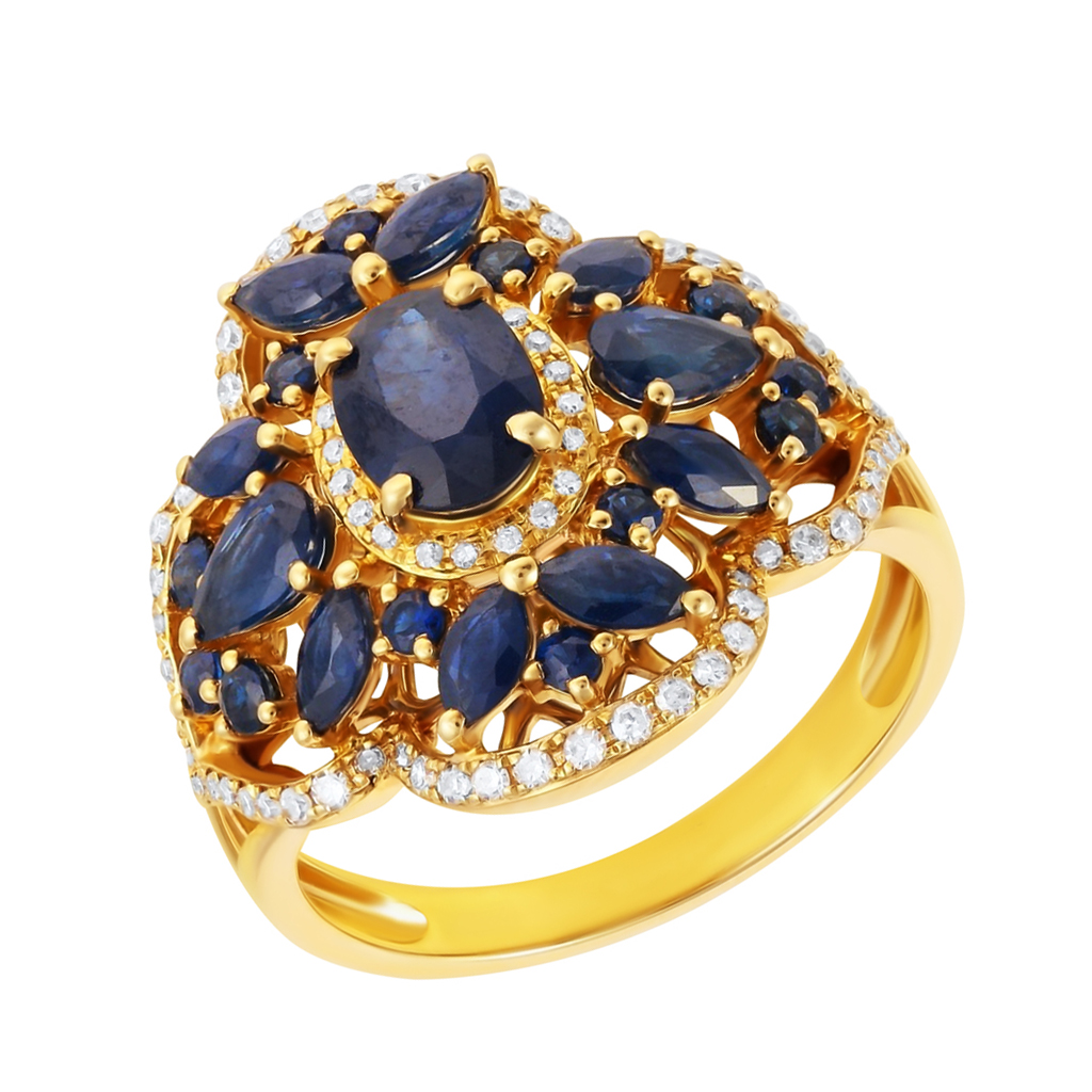Кольцо из желтого золота с бриллиантами и сапфирами
