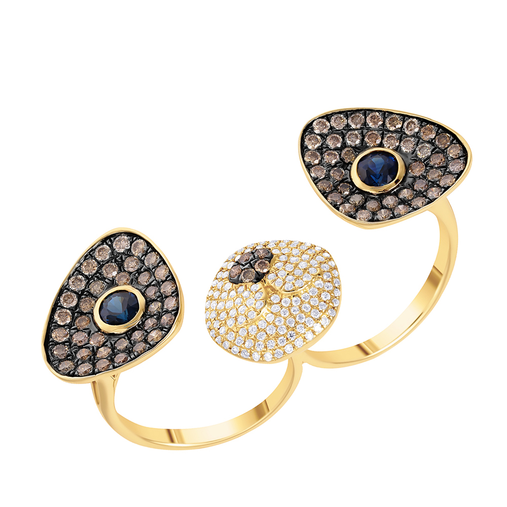 Кольца из желтого золота с бриллиантами и сапфирами