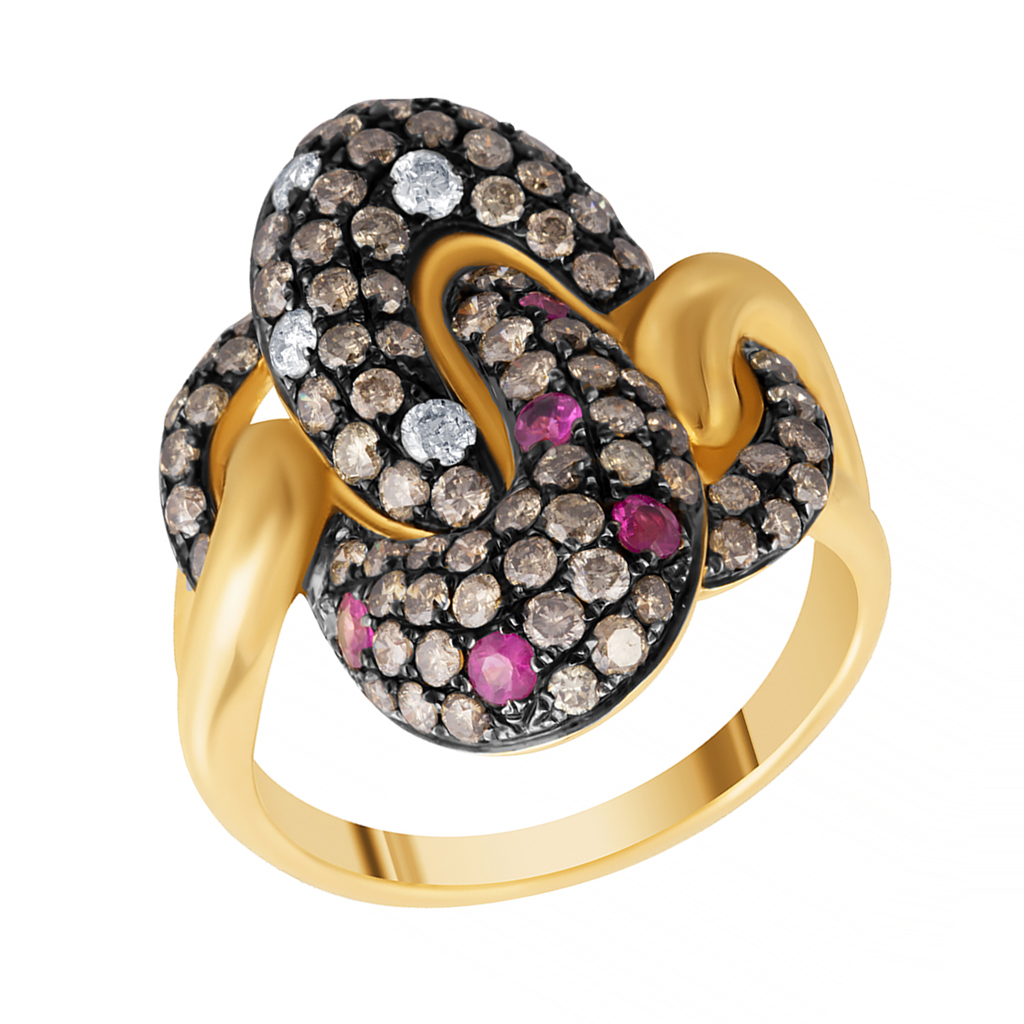 Кольцо из желтого золота с бриллиантами, сапфирами