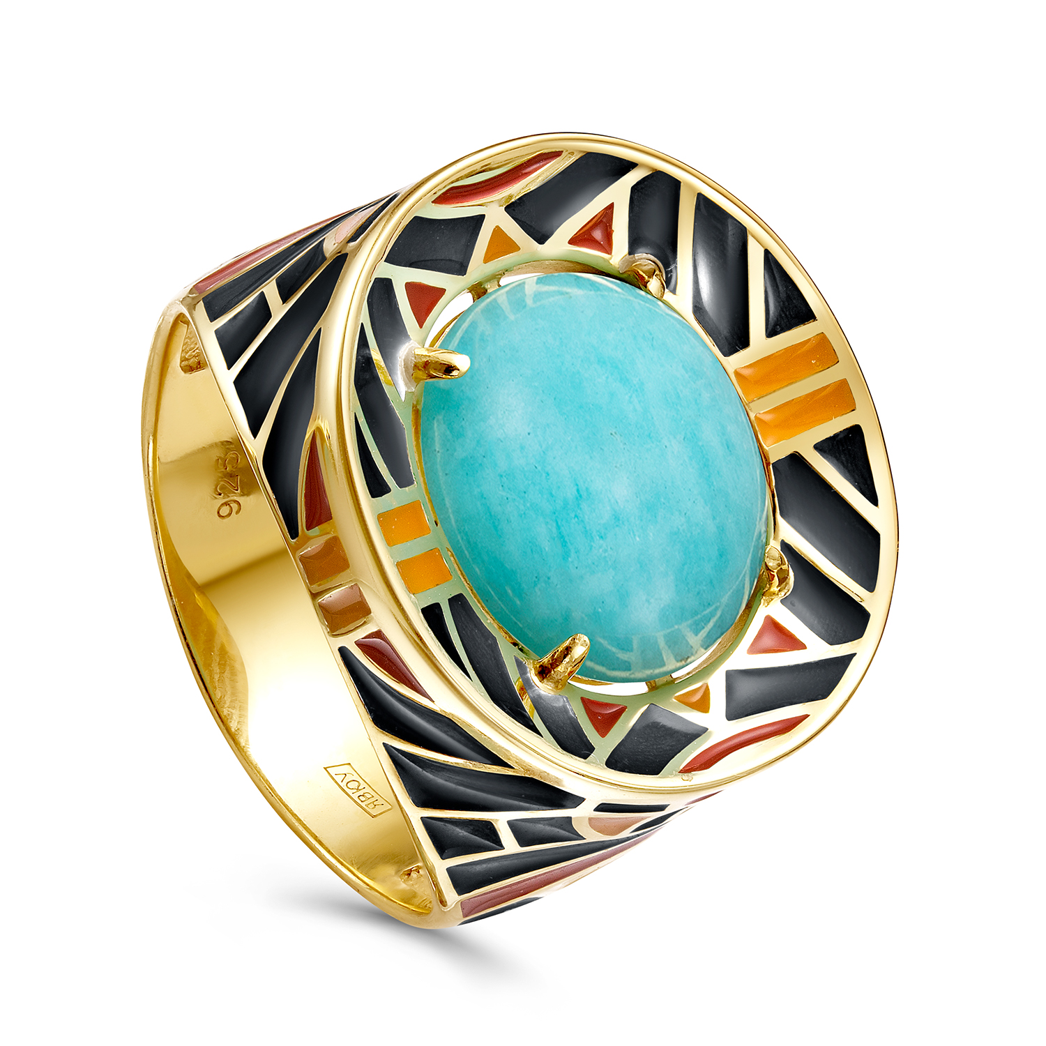 Кольцо из серебра с топазом, фианитами и эмалью