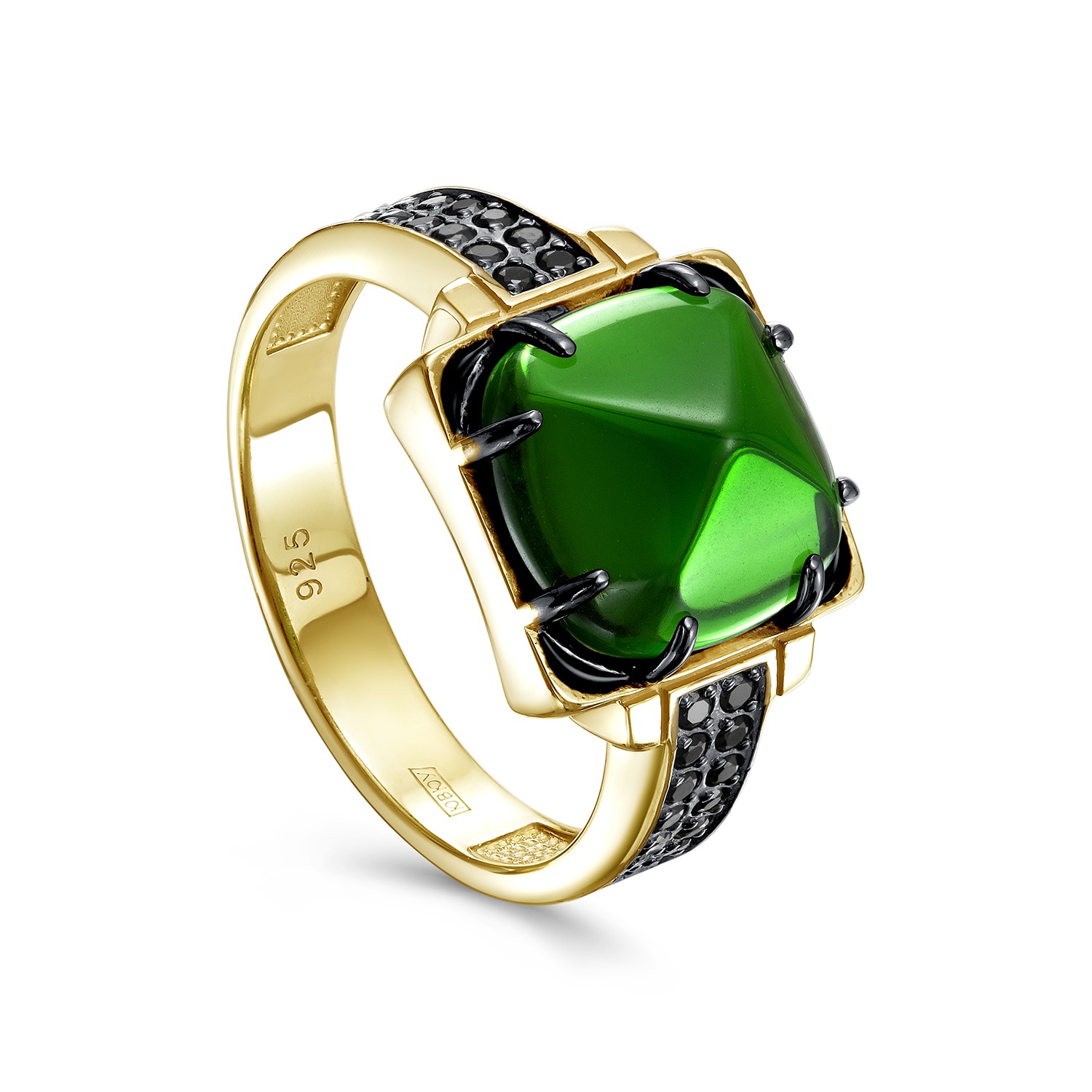 Кольцо из серебра с ситалом, фианитами