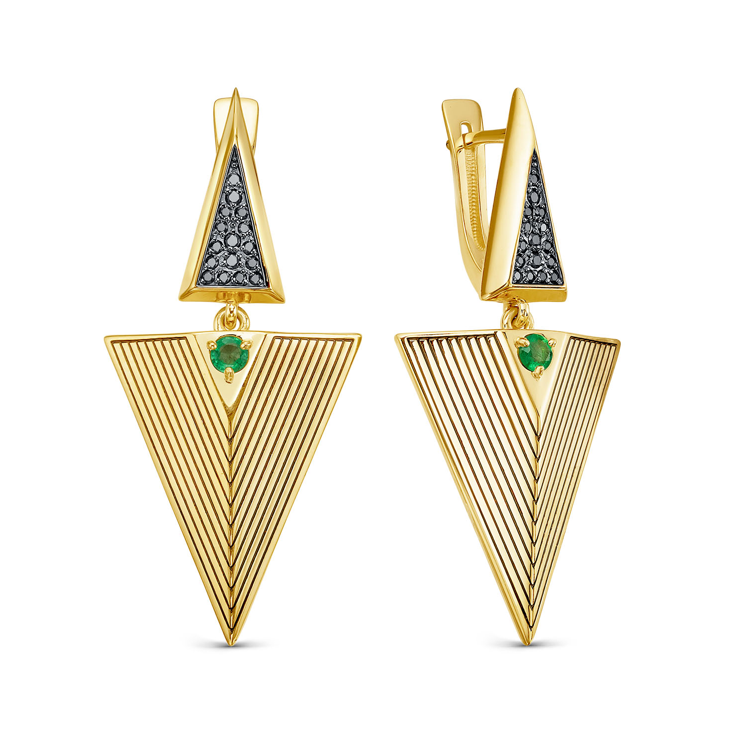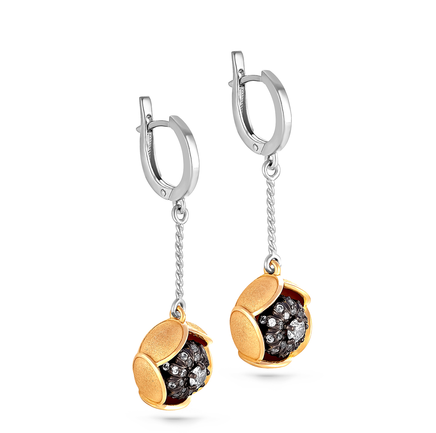 Серьги с английским замком из серебра с фианитом и золочением