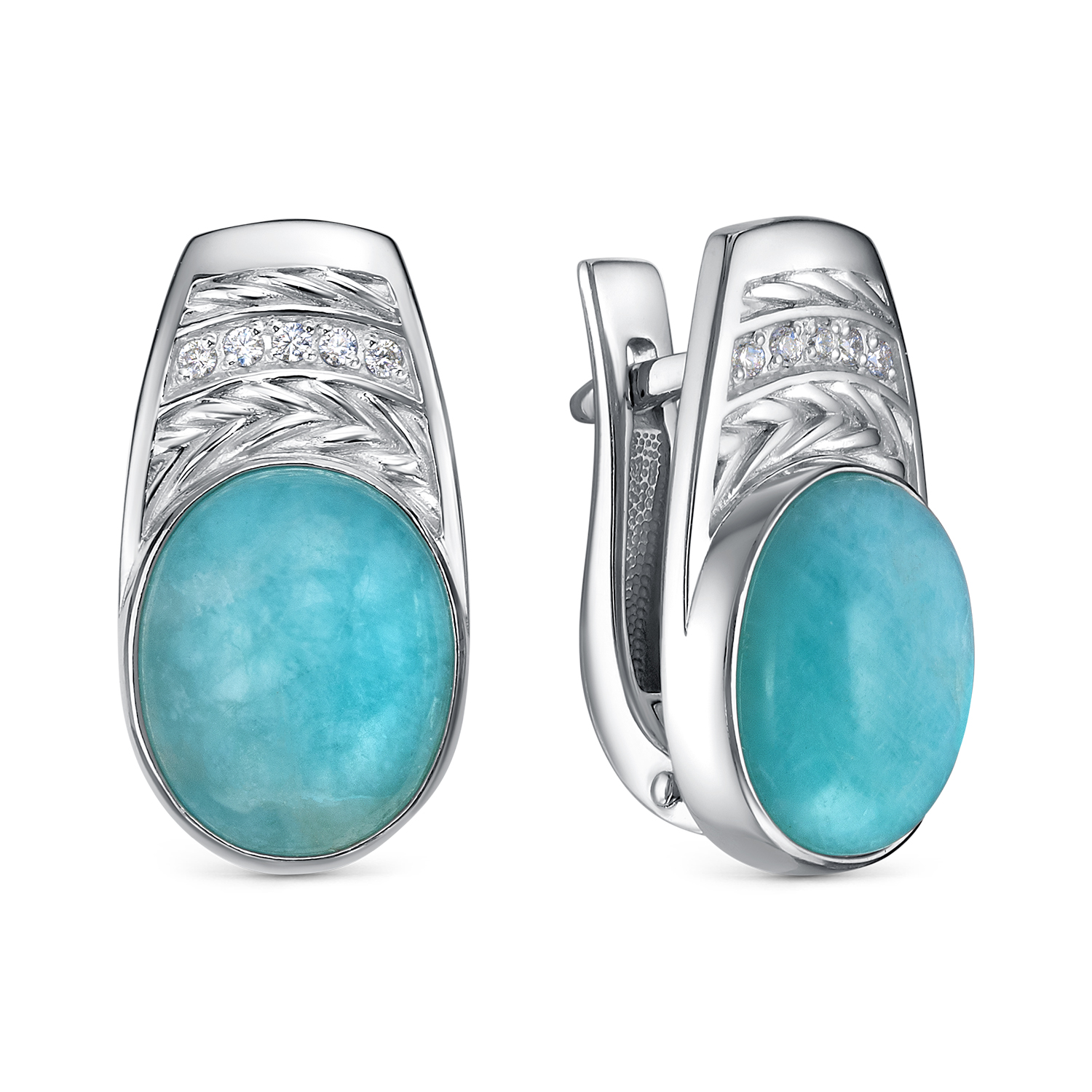 Серьги с английским замком из серебра с керамикой и цирконием