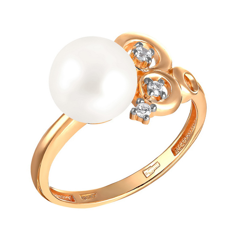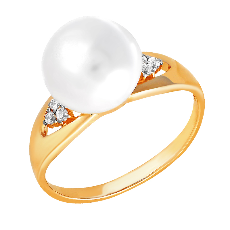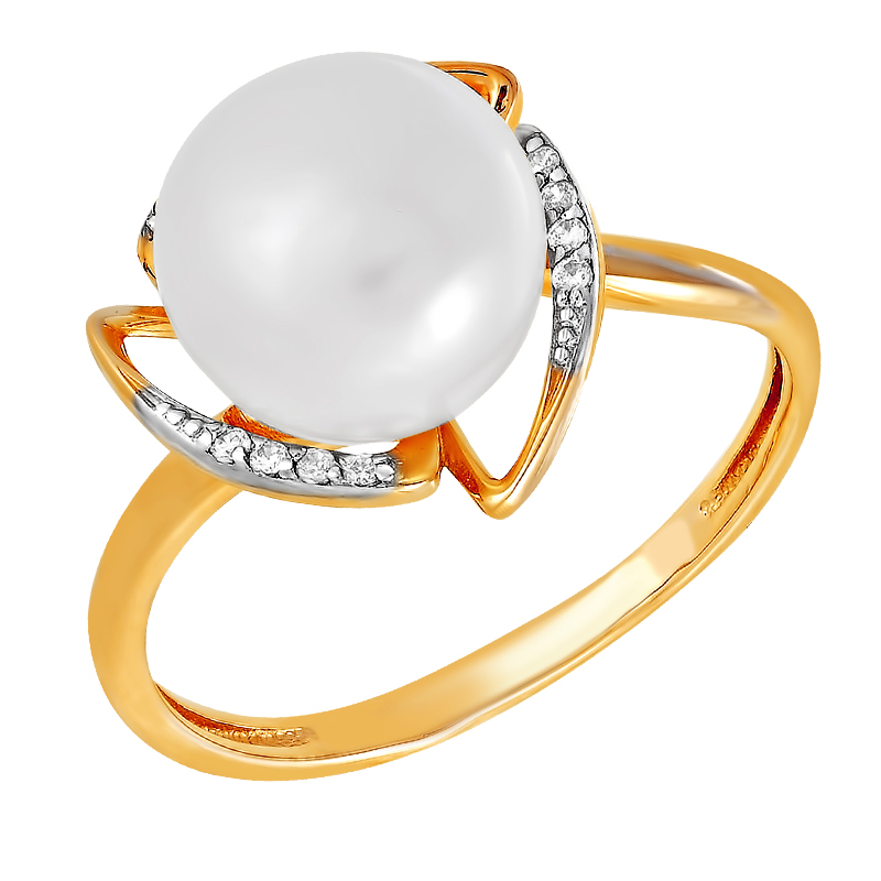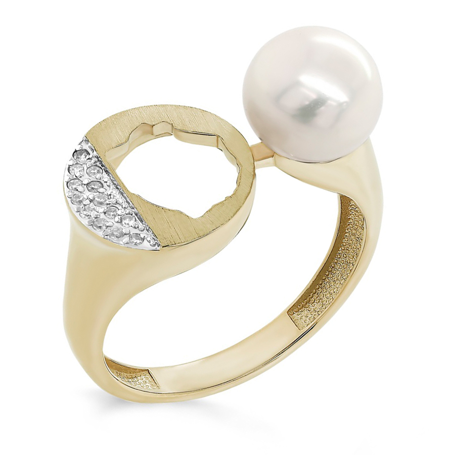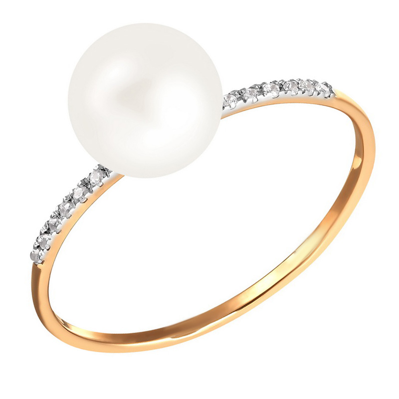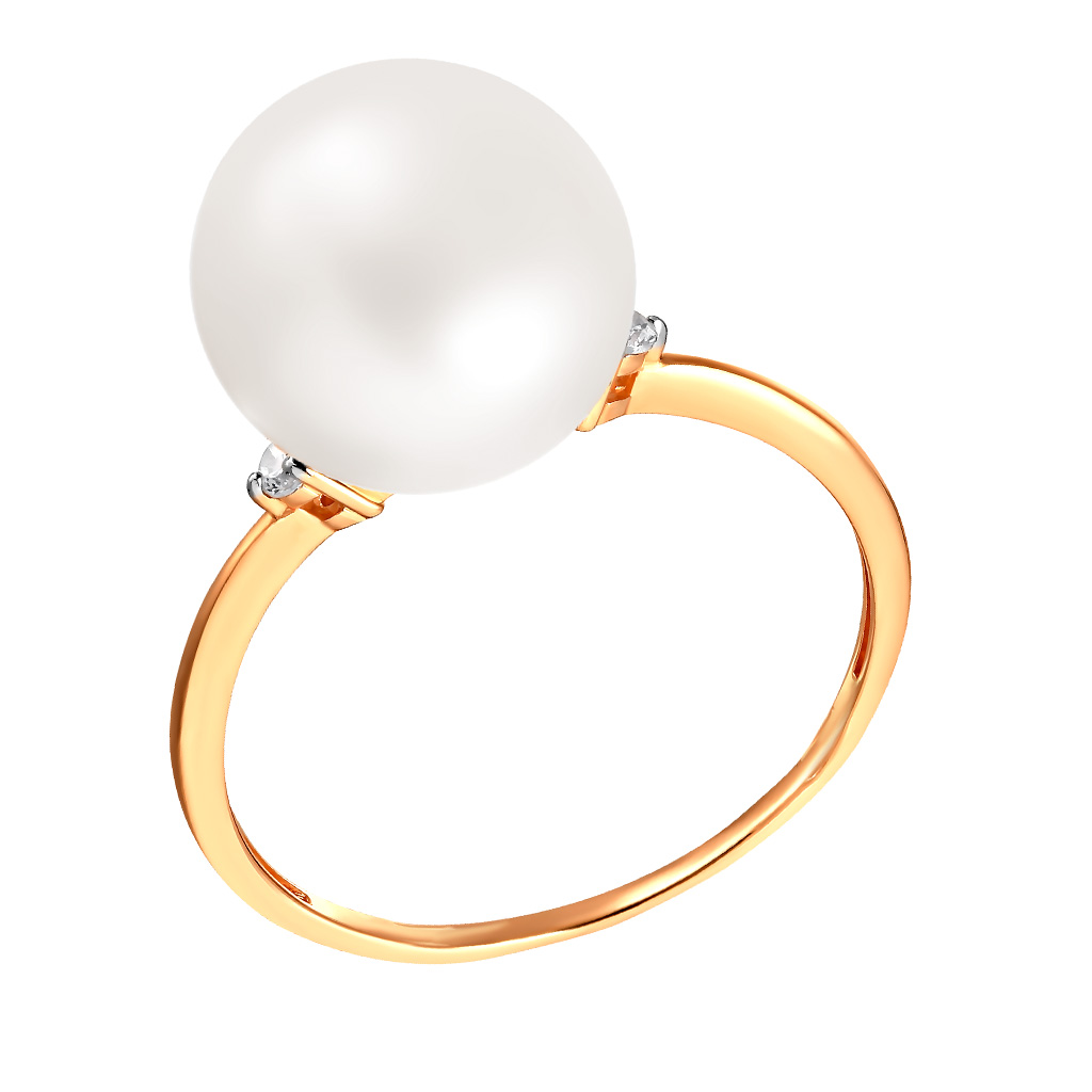 Кольцо из желтого золота с бриллиантом, жемчугом