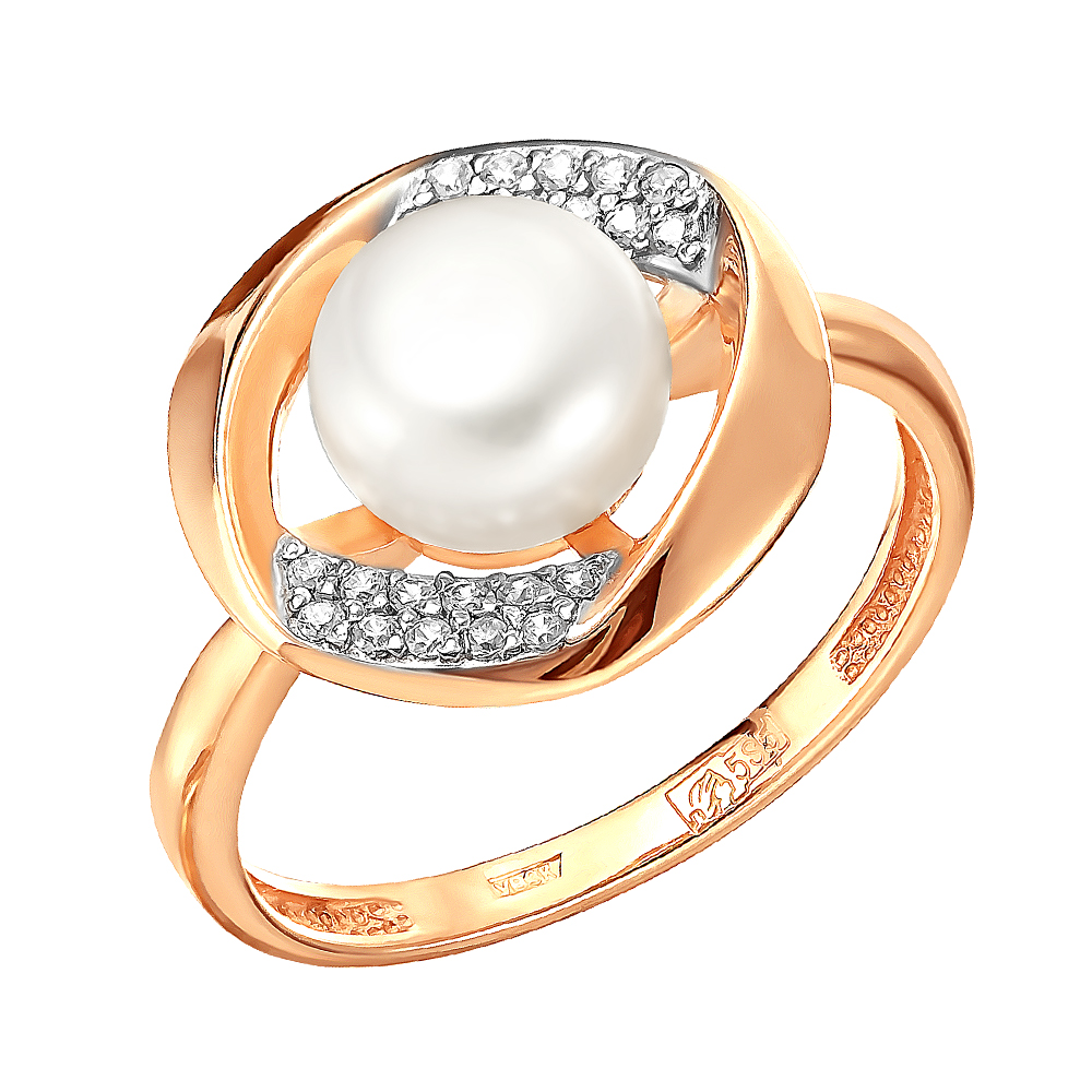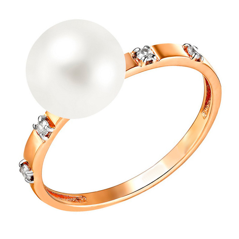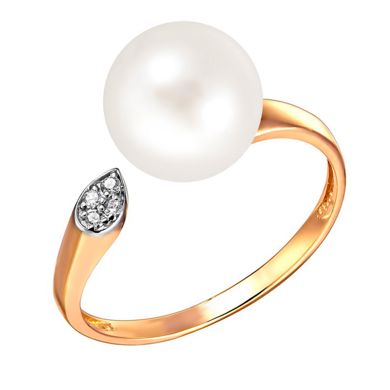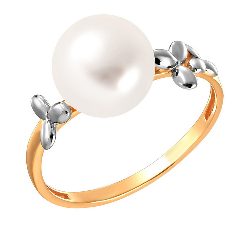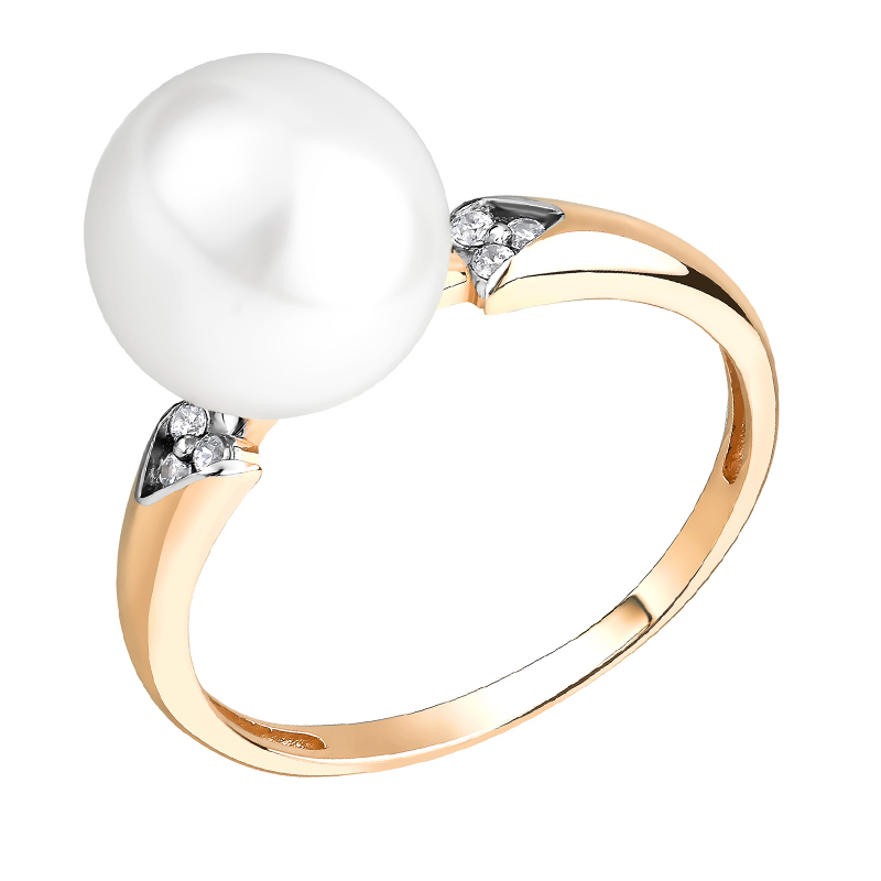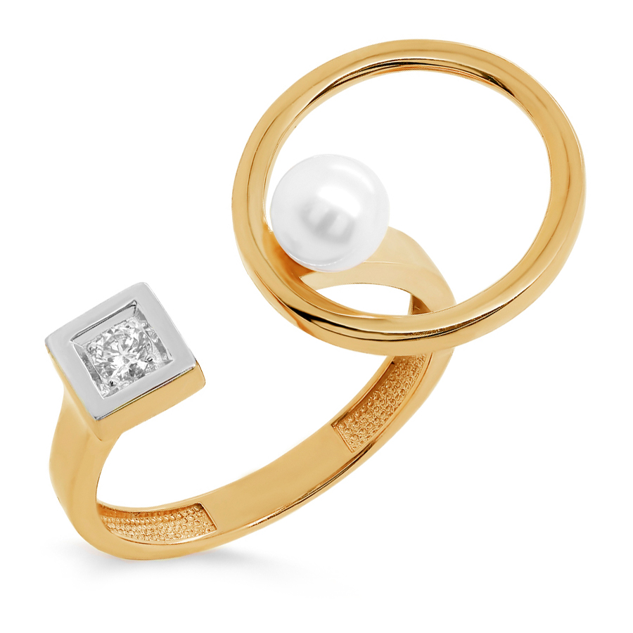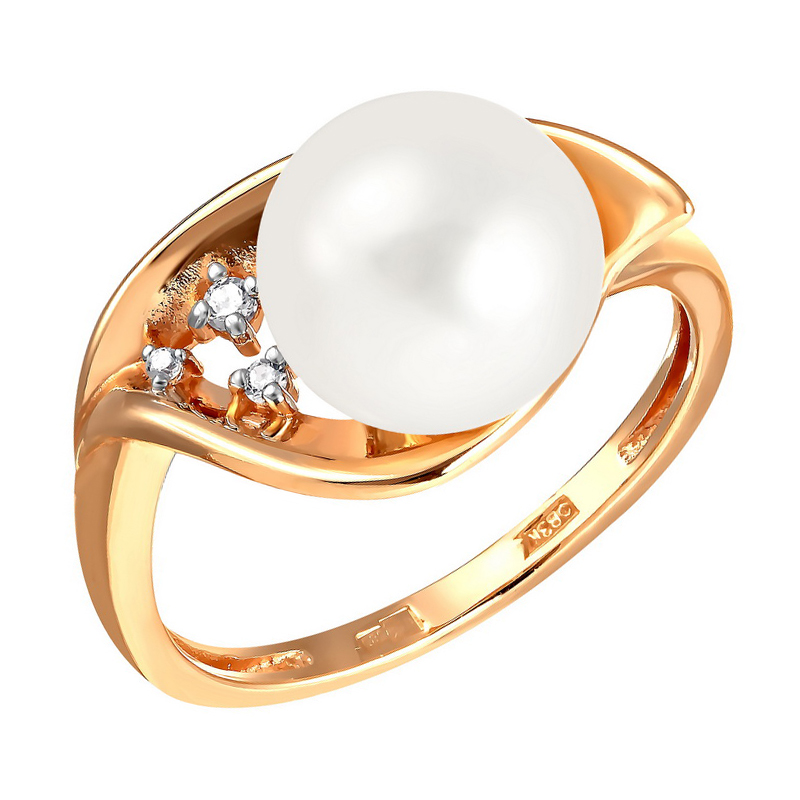 Кольцо из желтого золота с бриллиантом, жемчугом