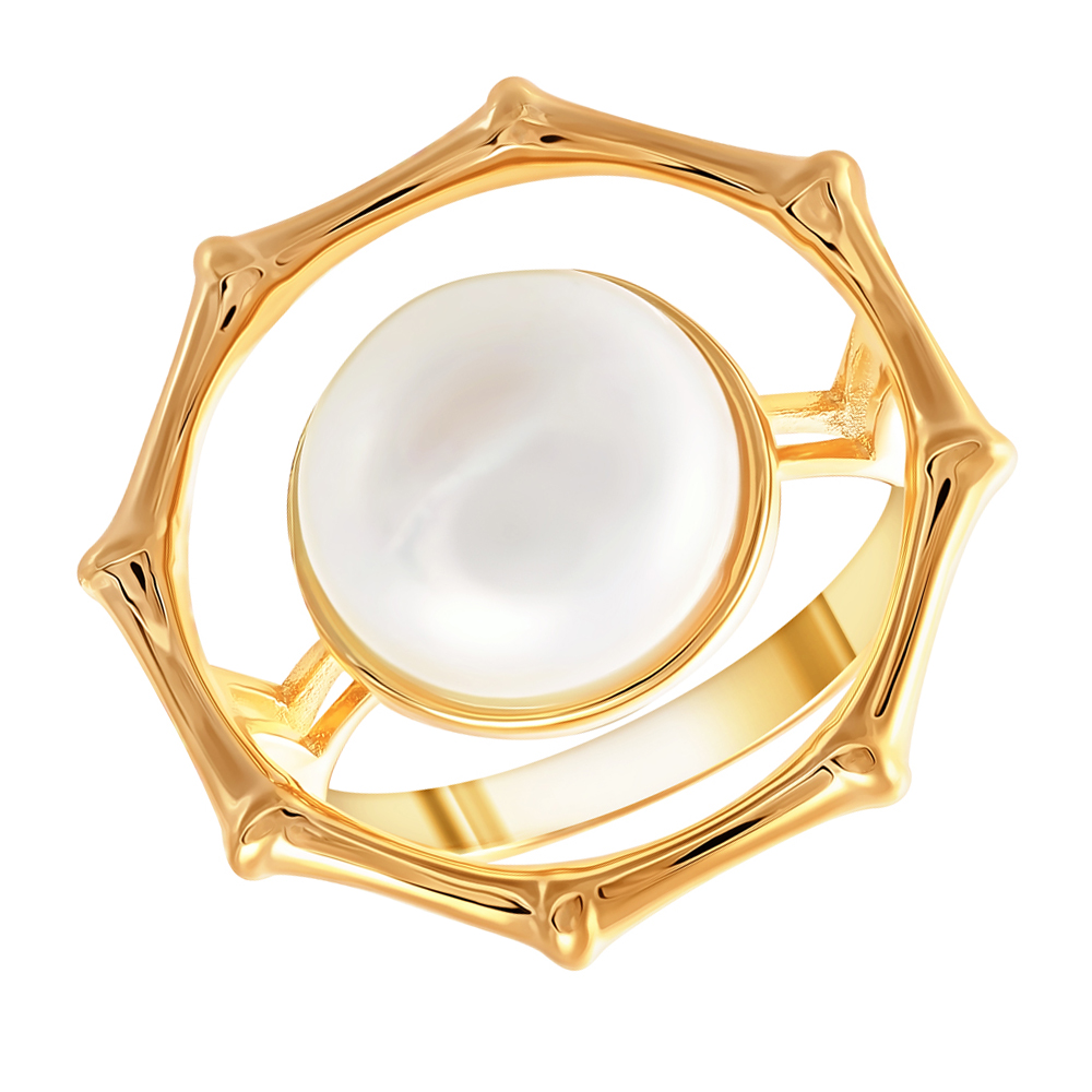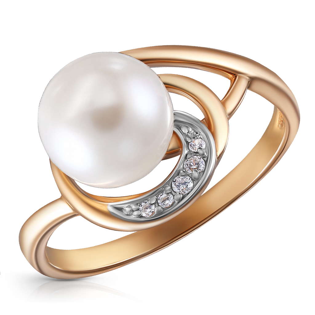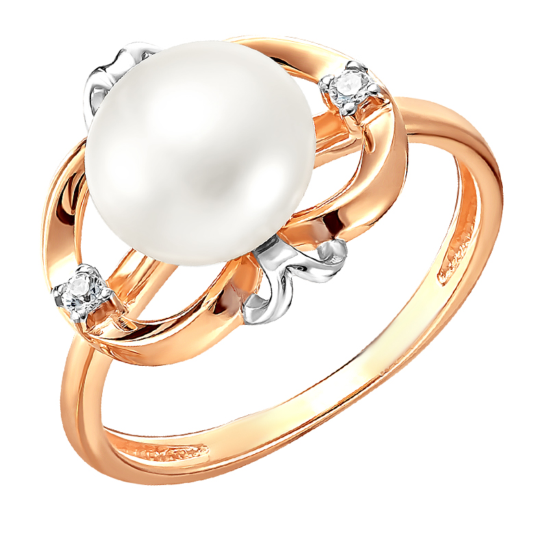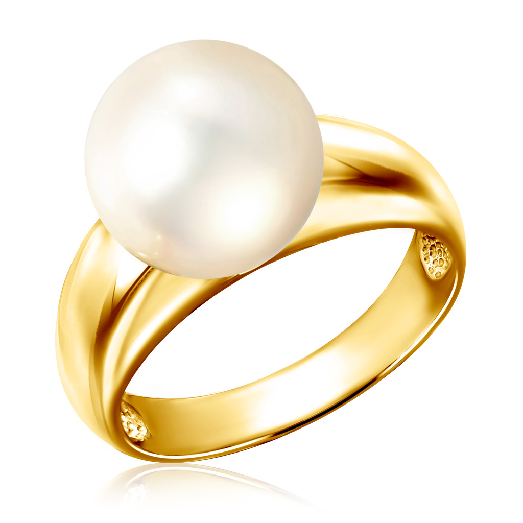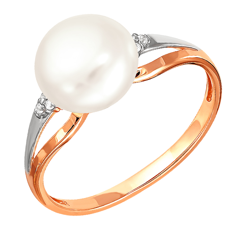 Кольцо из желтого золота с бриллиантом, жемчугом