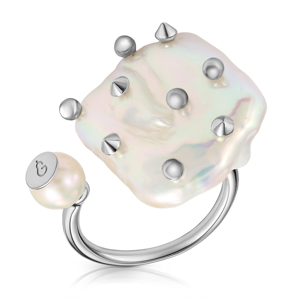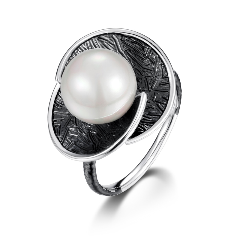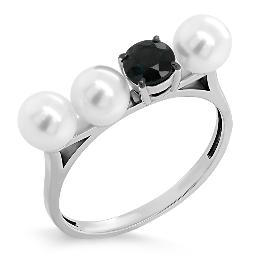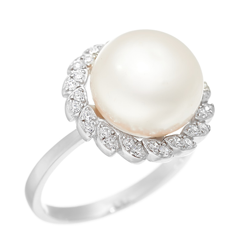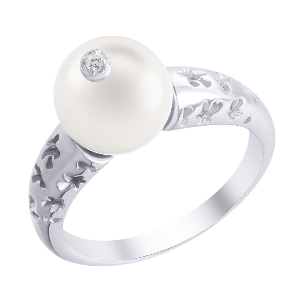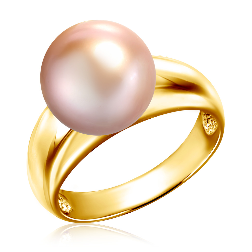 Кольцо из желтого золота с бриллиантом, жемчугом