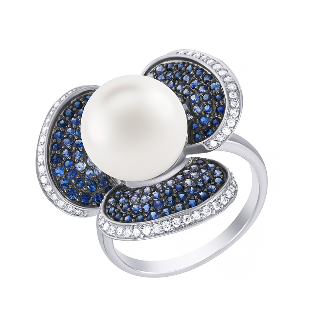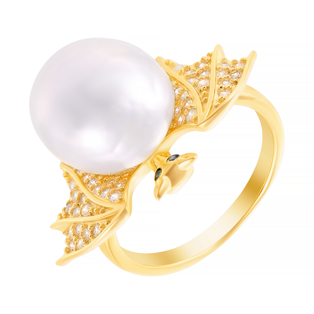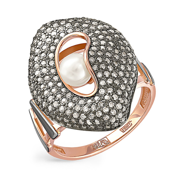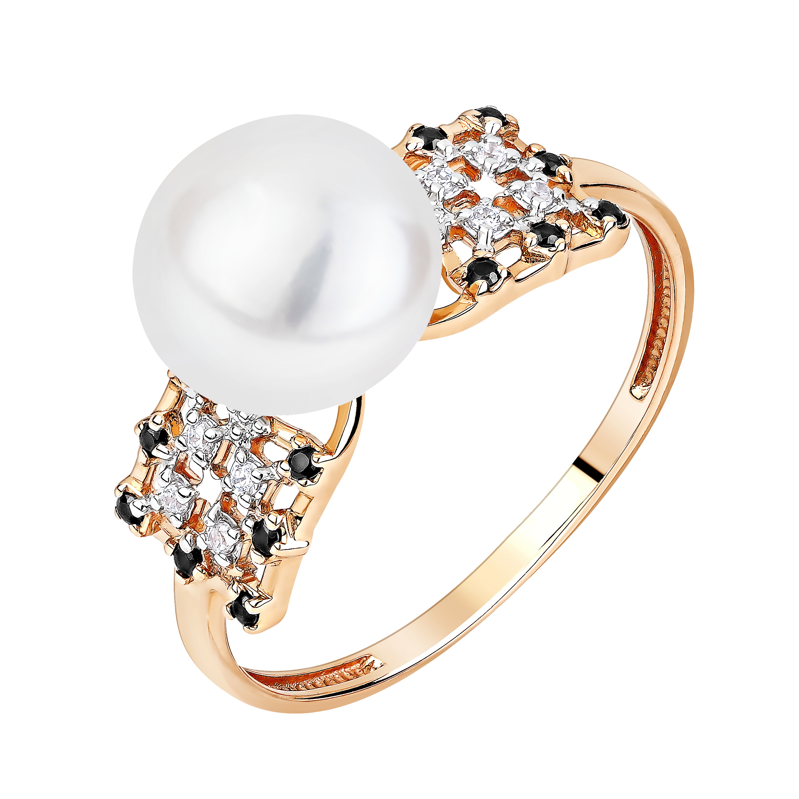 Кольцо из желтого золота с бриллиантами, жемчугом