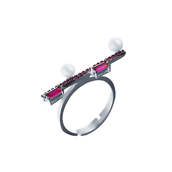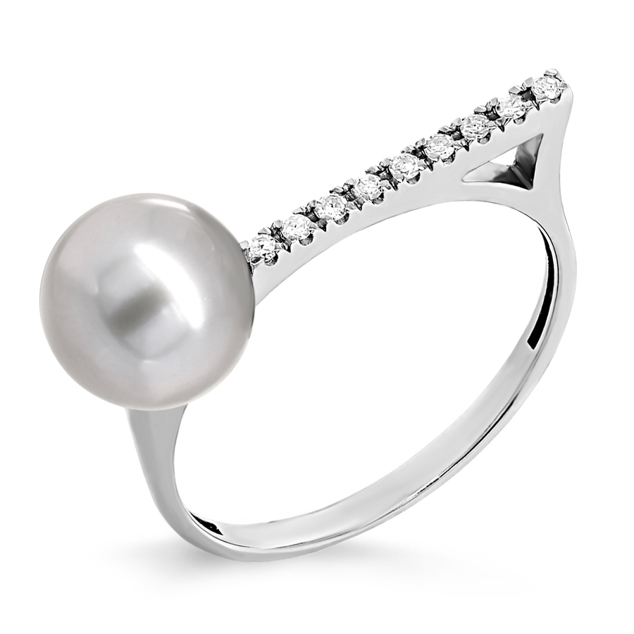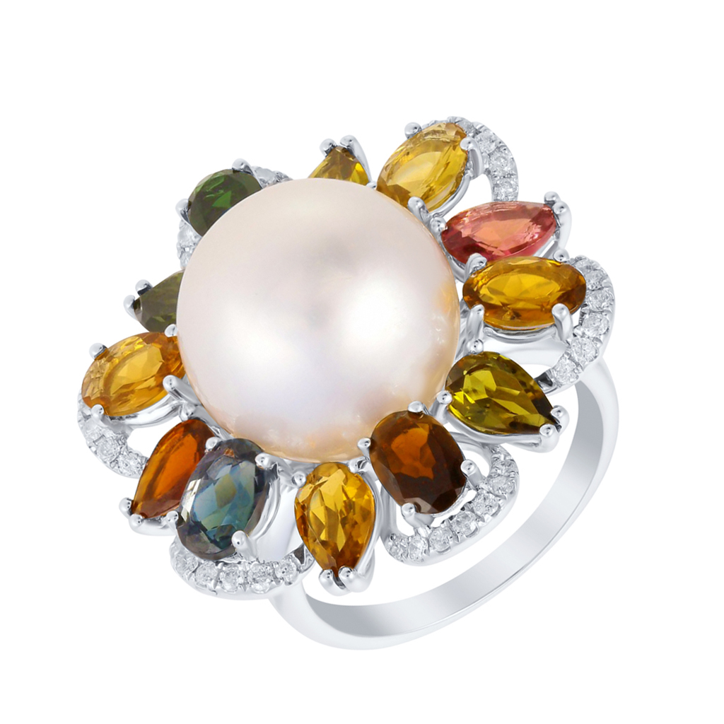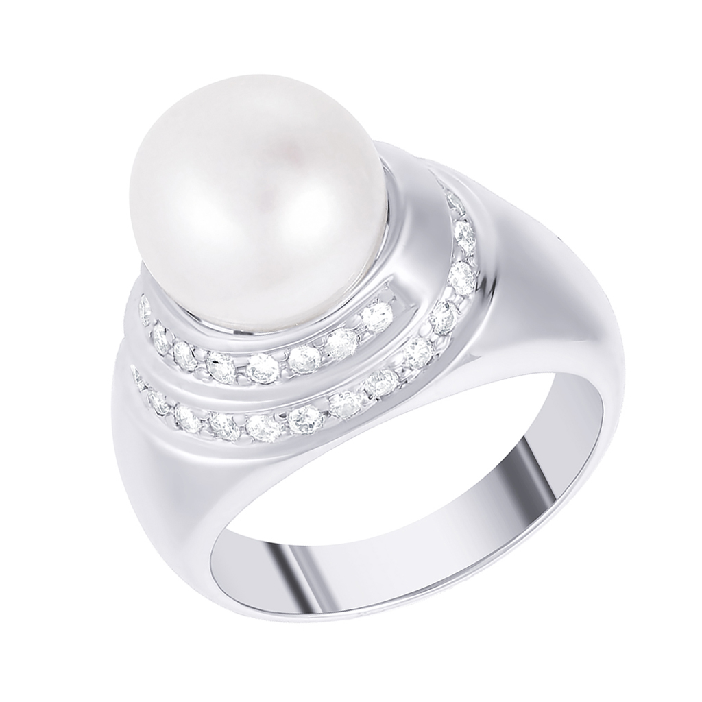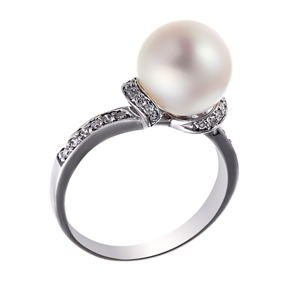 Кольцо из желтого золота с бриллиантами, жемчугом