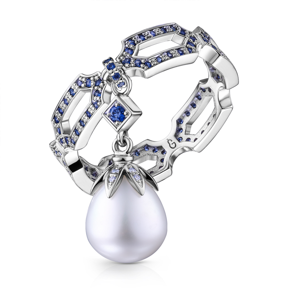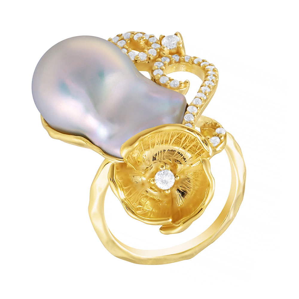 Кольцо из желтого золота с бриллиантами и жемчугом
