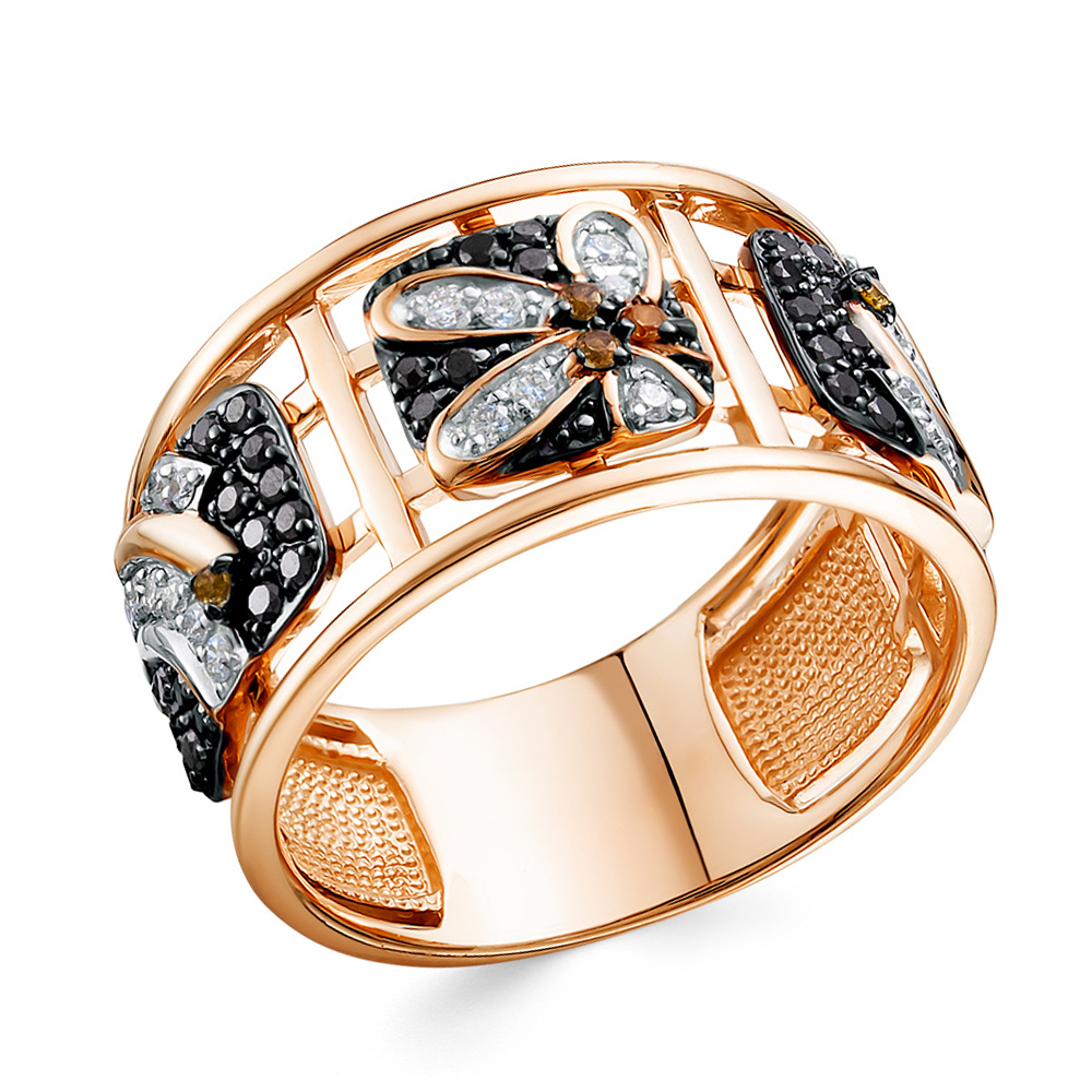 Кольцо из комбинированного золота с бриллиантами, раухтопазом