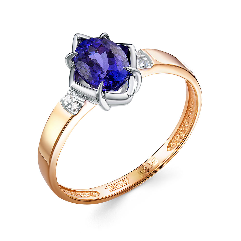 Кольцо из комбинированного золота с бриллиантами, танзанитом