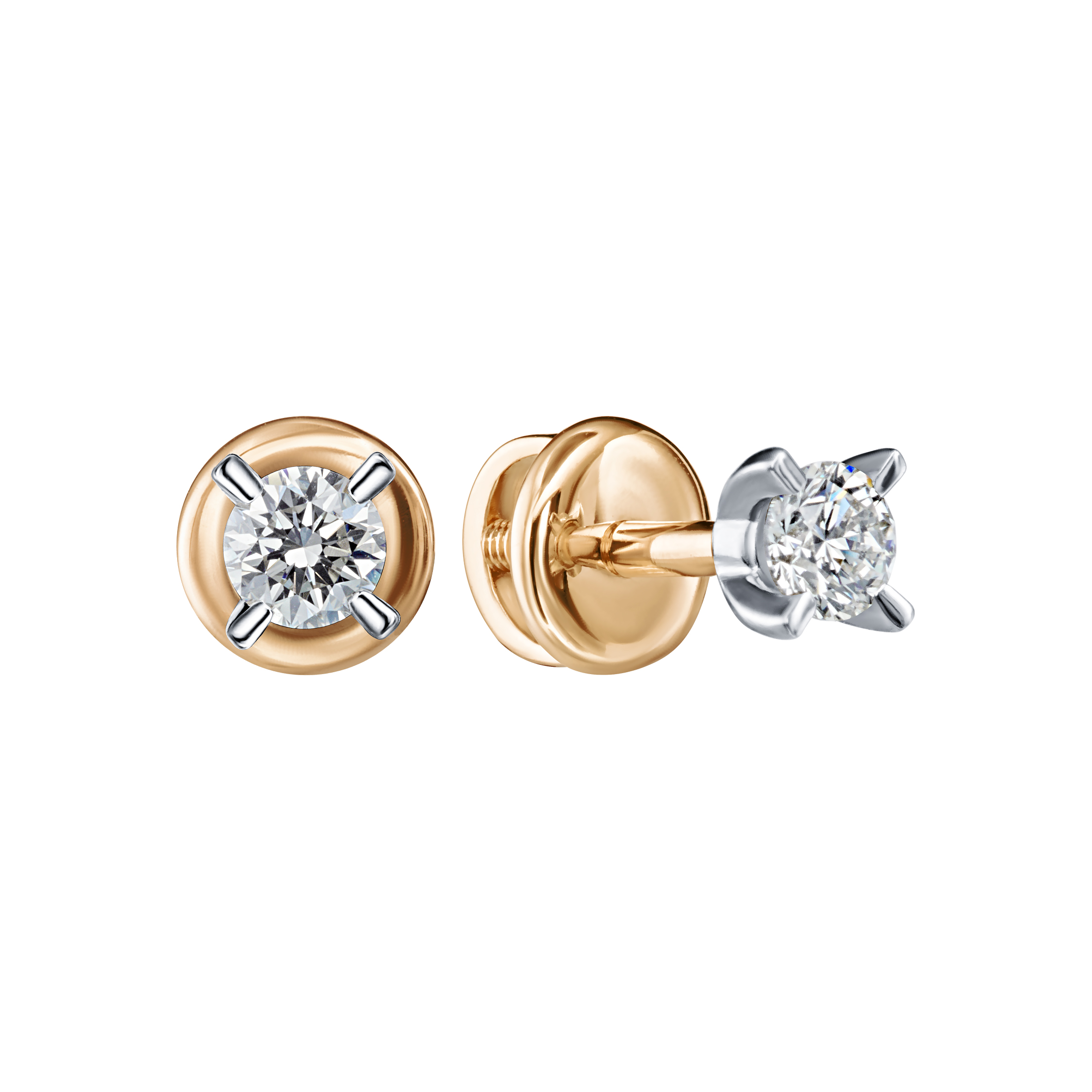 Серьги с гранатом, бриллиантами с английским замком из комбинированного золота