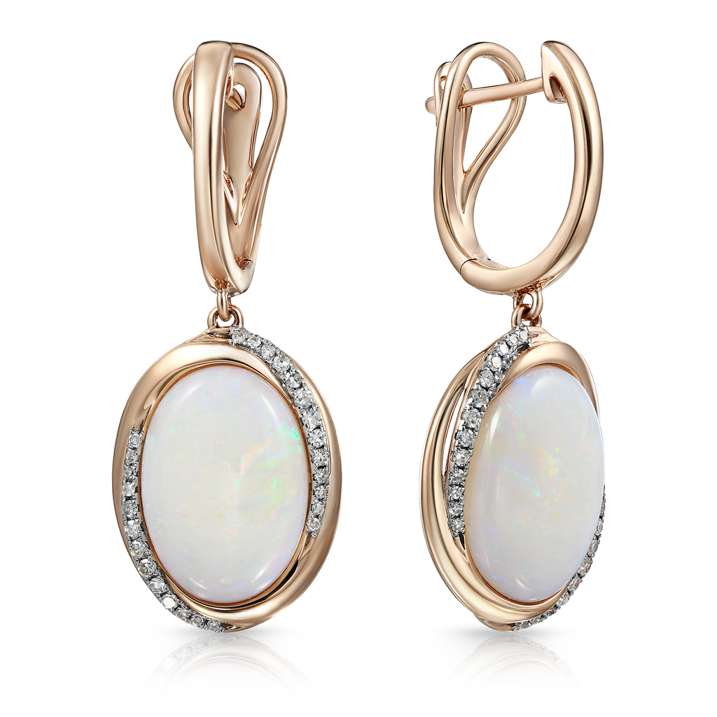Кольцо из красного золота с бриллиантами, опал