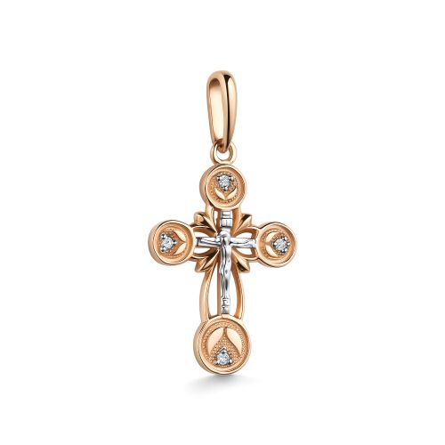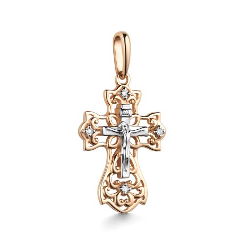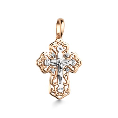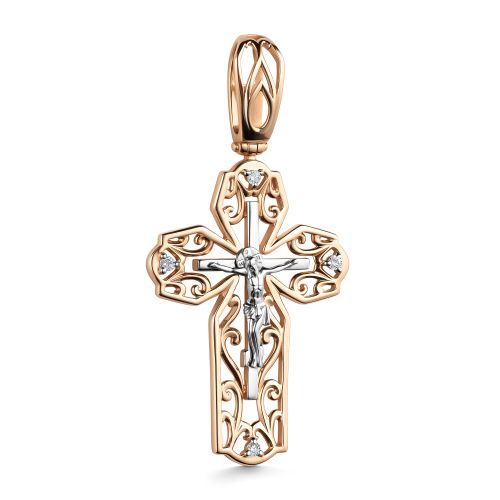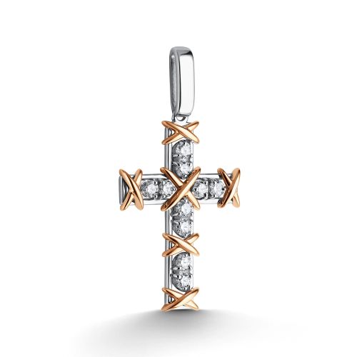 Крест из комбинированного золота с фианитом