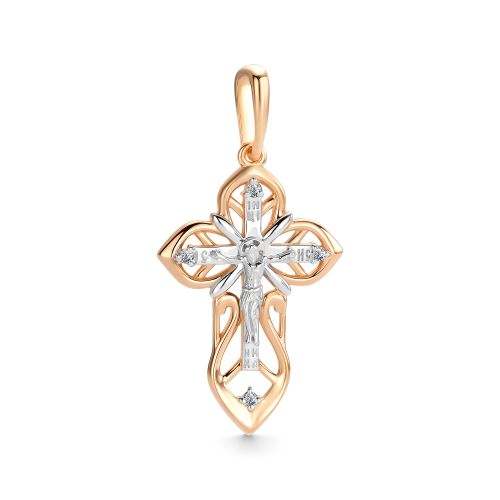 Крест из комбинированного золота с бриллиантами