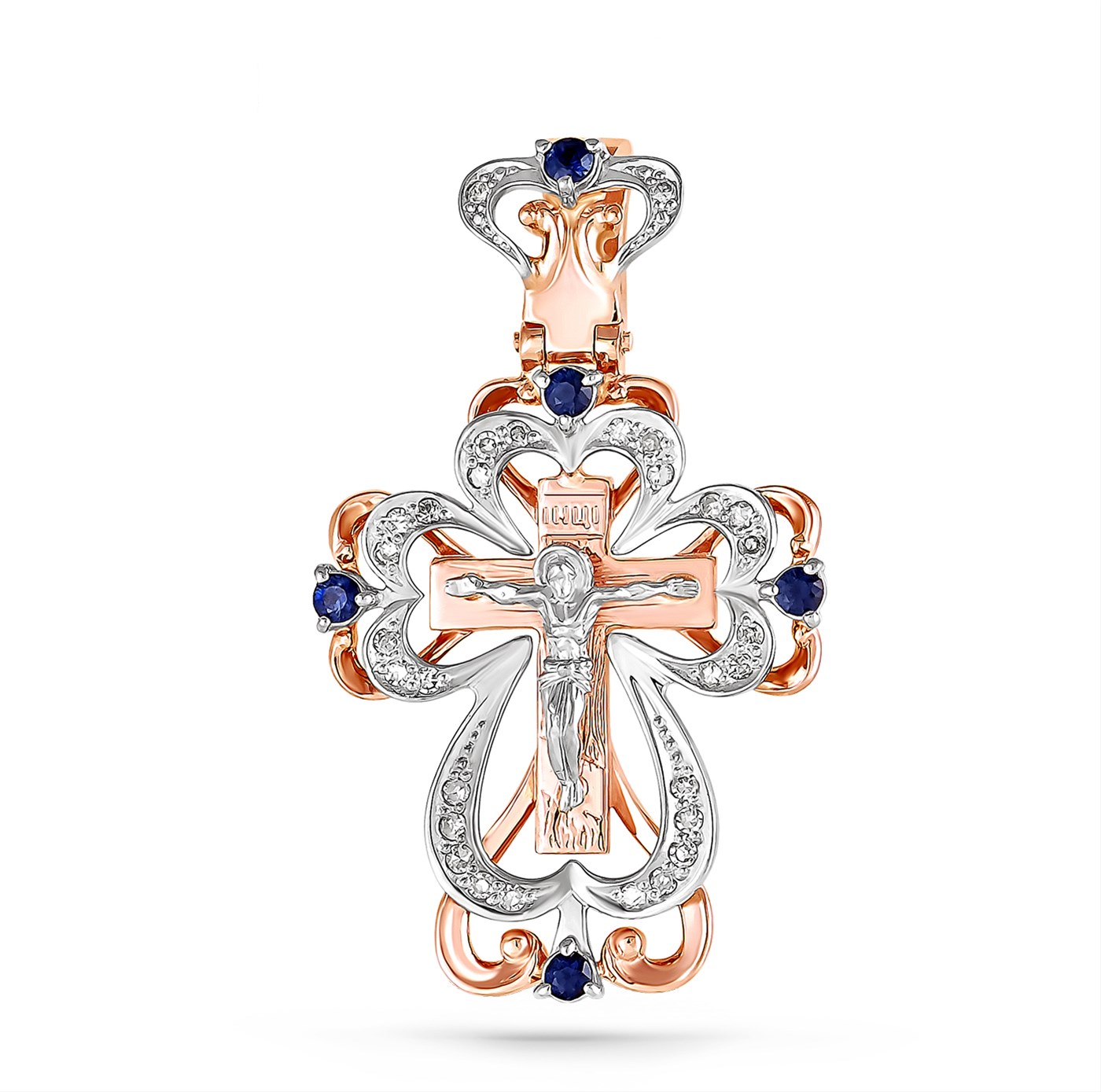 Крест из красного золота с сапфирами