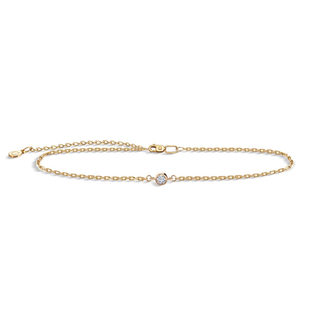 Браслет на ногу декоративный из желтого золота с фианитом, плетение якорное