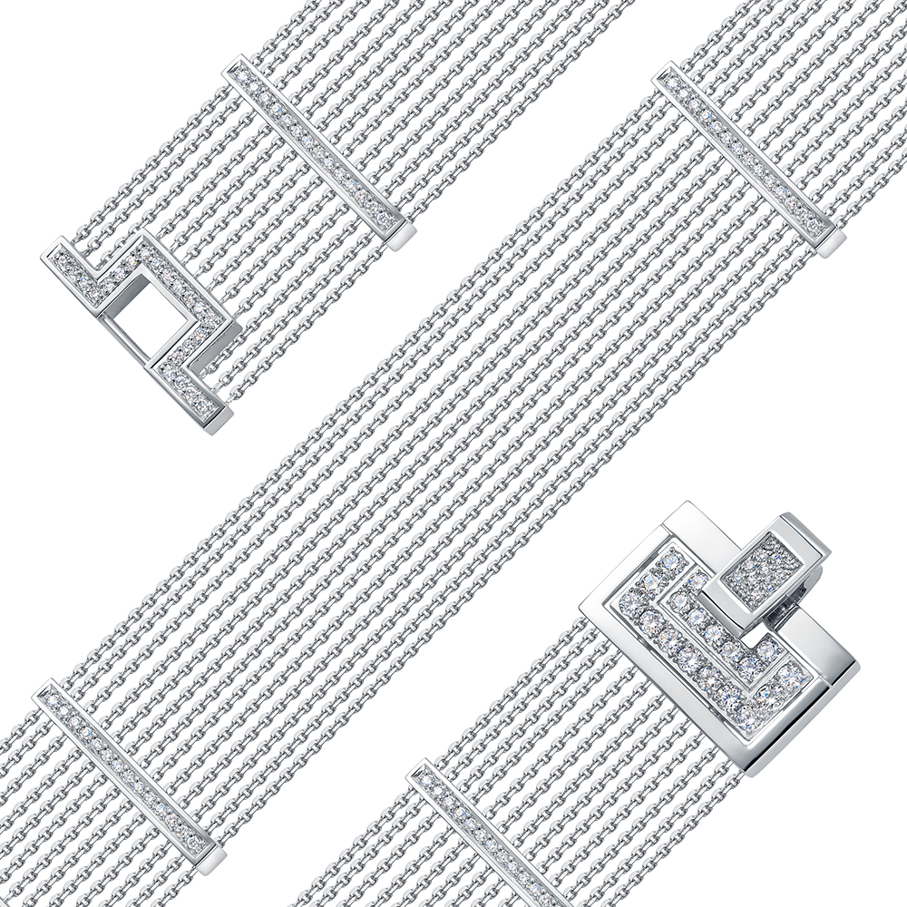 Браслет декоративный из белого золота с бриллиантами, жемчугами