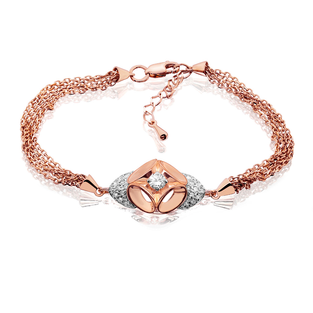 Браслет декоративный из красного золота с топазом, цитрином, фианитом, плетение якорное