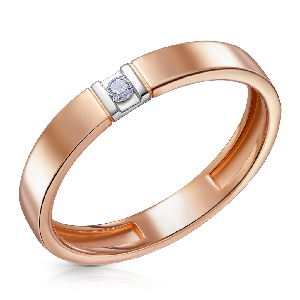 Кольцо обручальное из комбинированного золота с бриллиантом