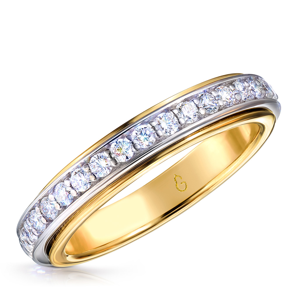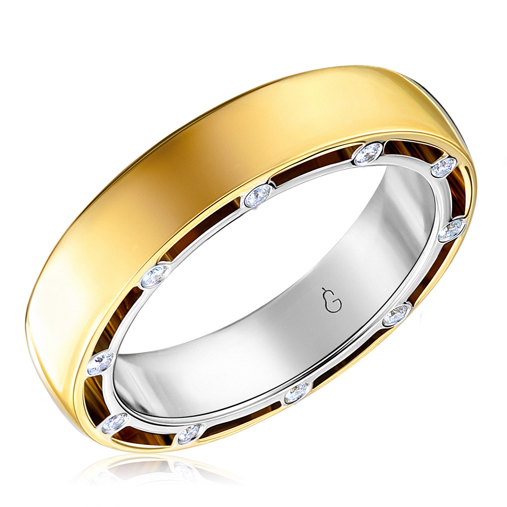 Кольцо обручальное из комбинированного золота с бриллиантами