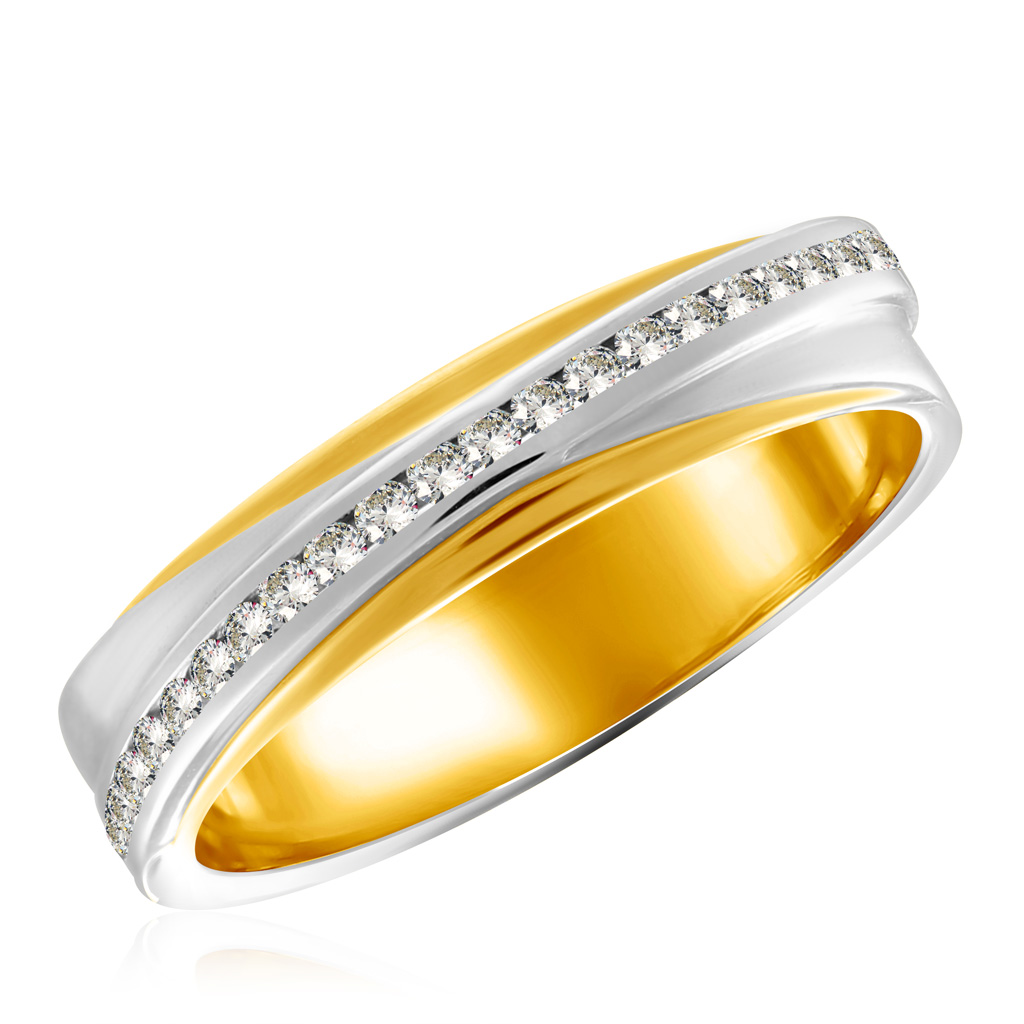 Кольцо обручальное из комбинированного золота с бриллиантами