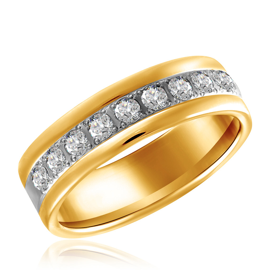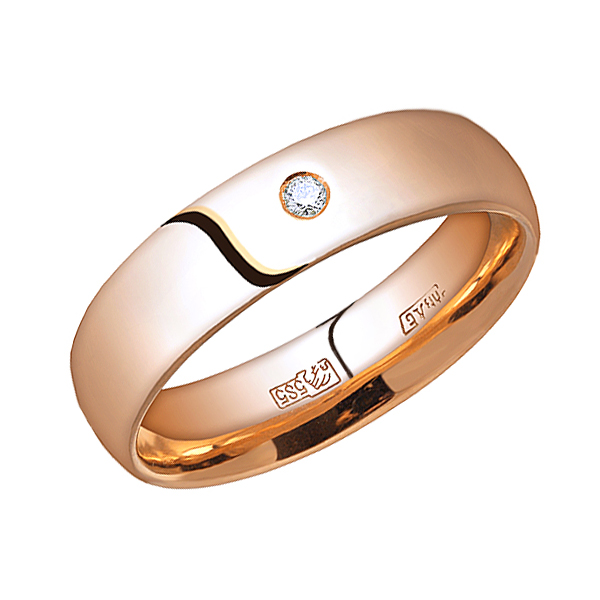 Кольцо обручальное из комбинированного золота с бриллиантами