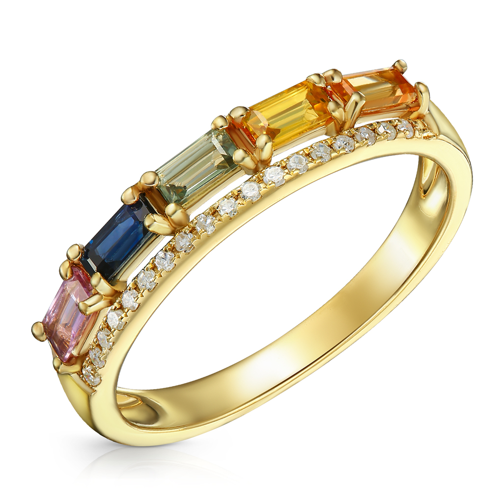 Кольцо из желтого золота с бриллиантами, сапфирами