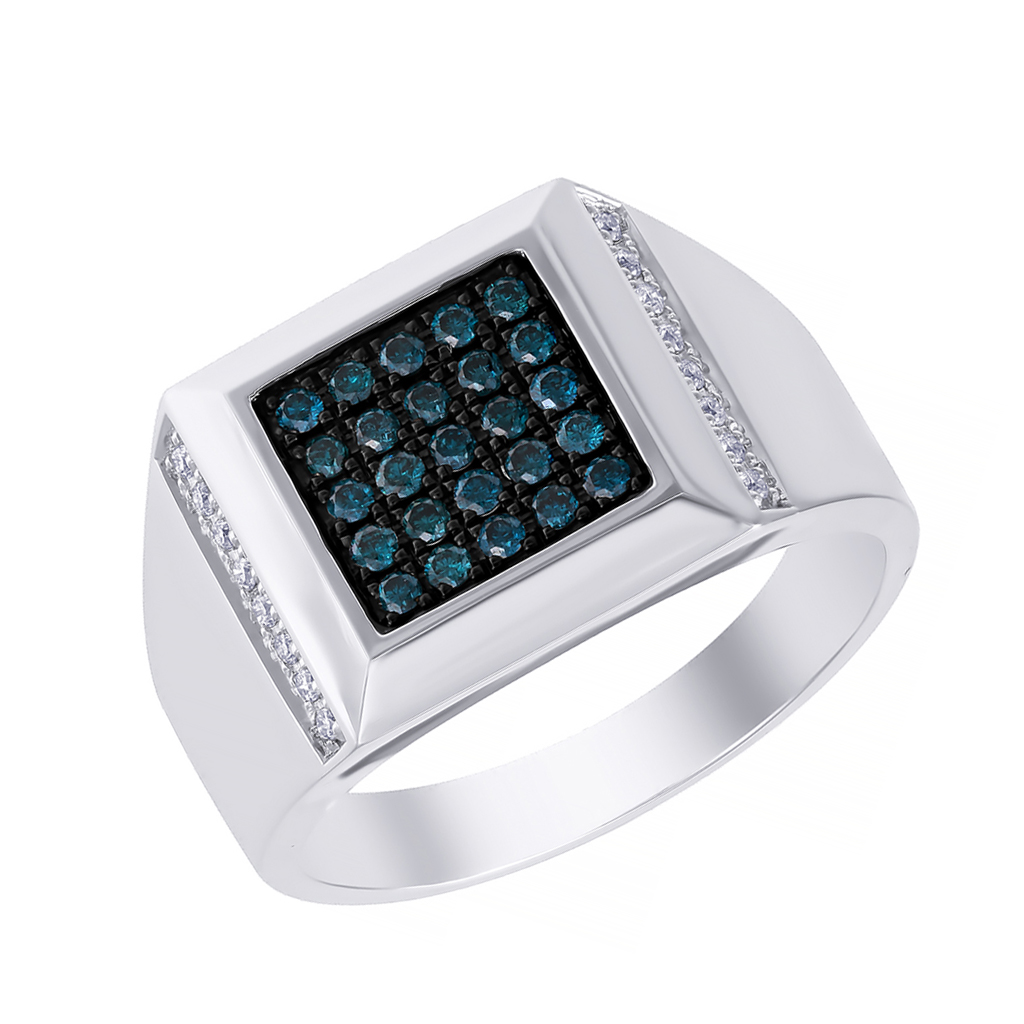 Кольцо мужское из красного золота с сапфиром, бриллиантами