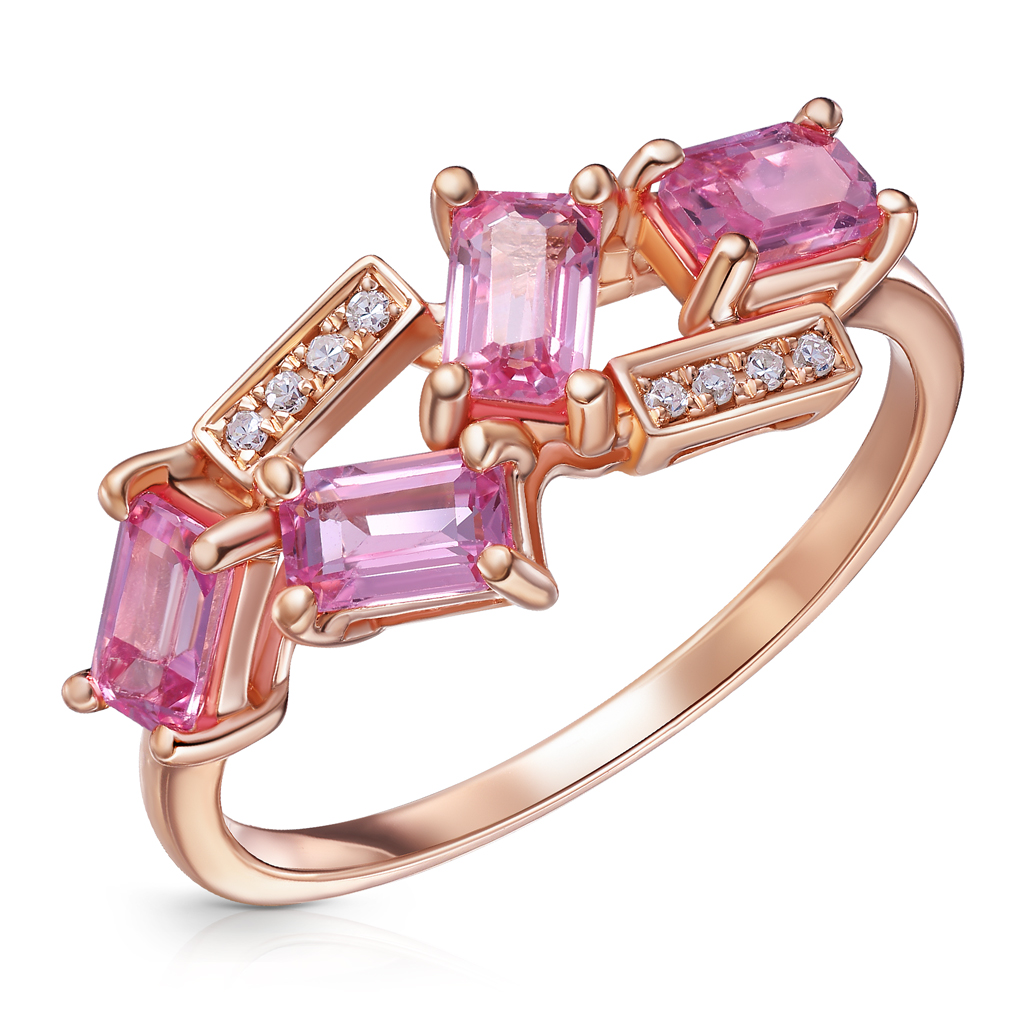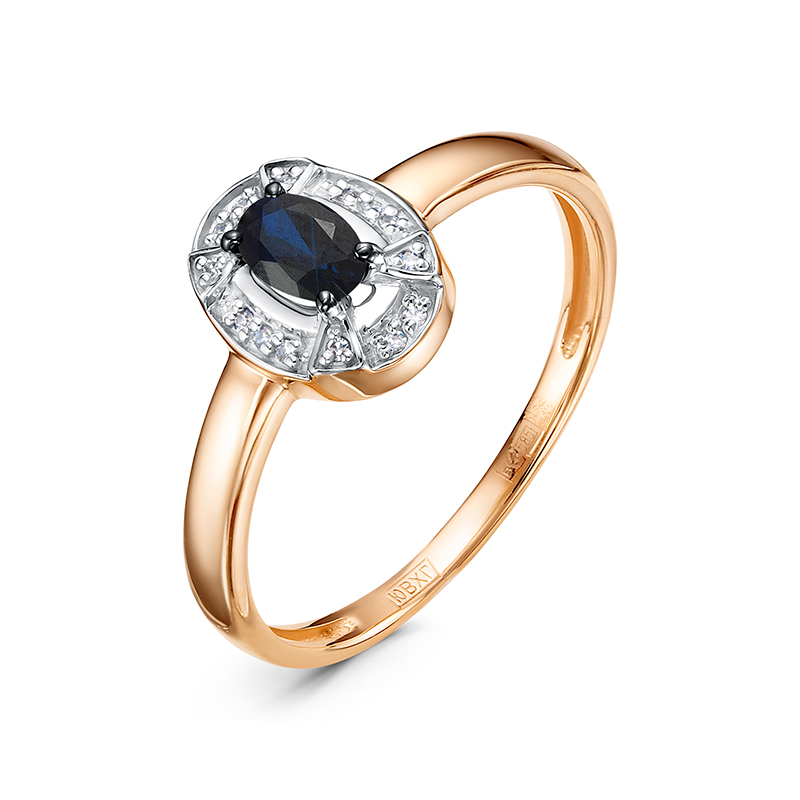 Кольцо из желтого золота с бриллиантами, сапфирами