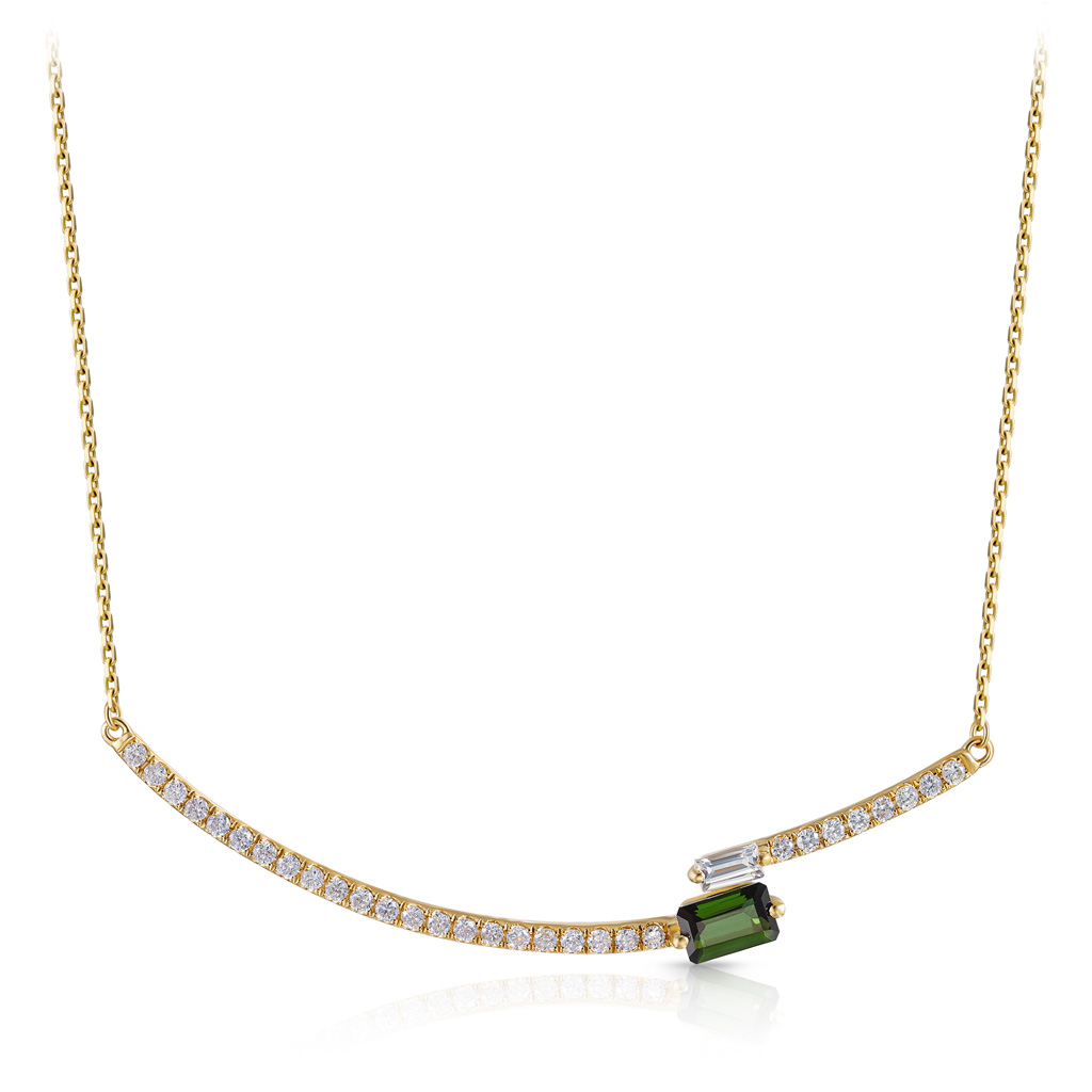 Подвеска из желтого золота с бриллиантами, турмалином и сапфиром