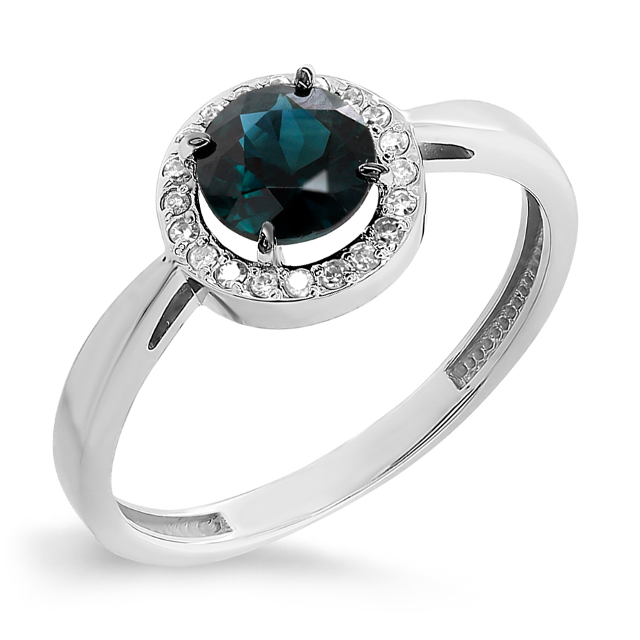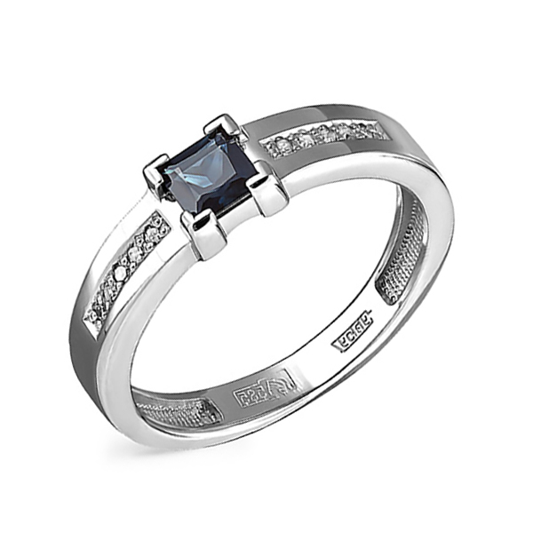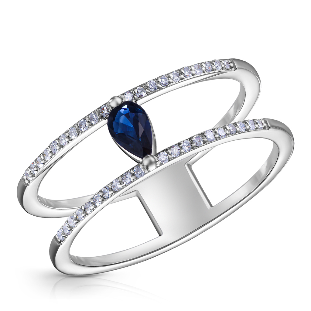 Кольцо из белого золота с эмалью, бриллиантами, сапфирами